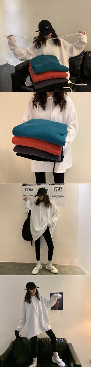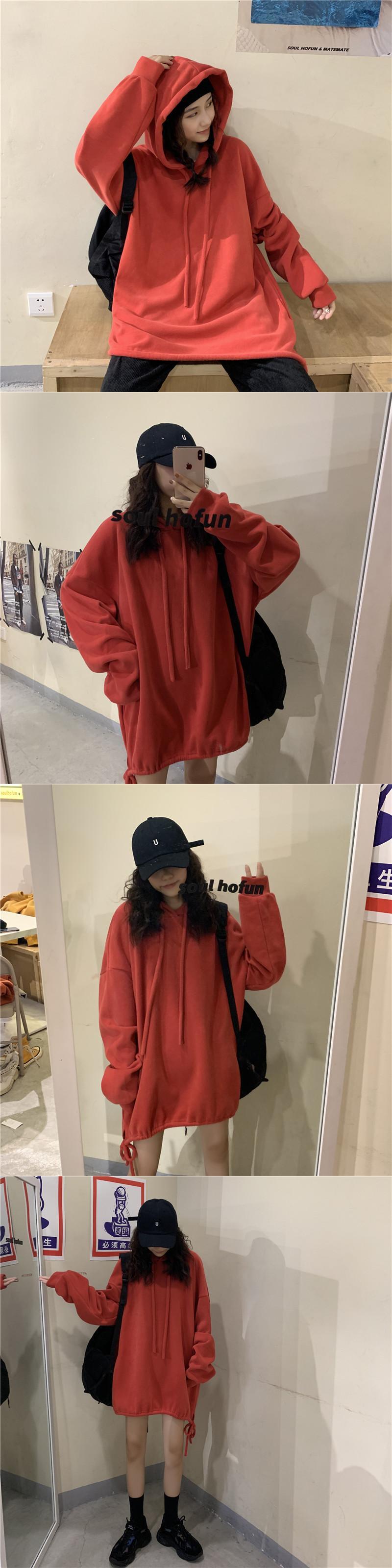フード付きセーター女性2020年秋新バージョンルーズプラスベルベット厚手のミドル丈ドローストリングトップインタイド クレセントシティ12137653763