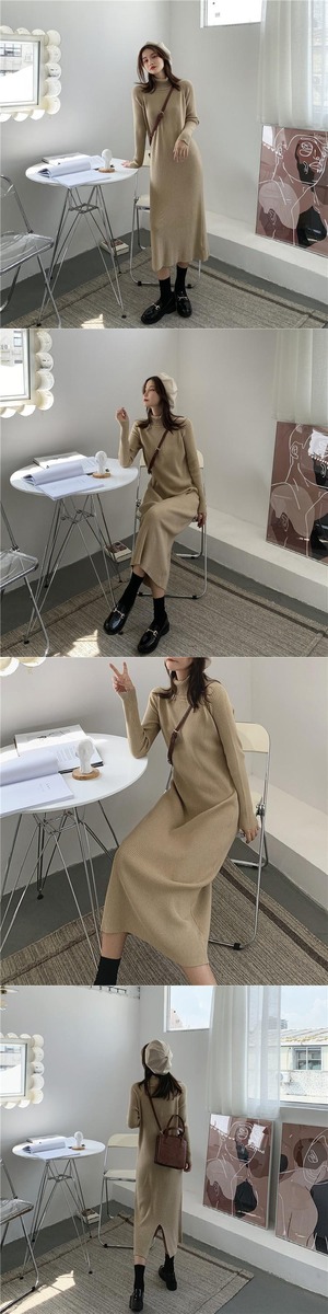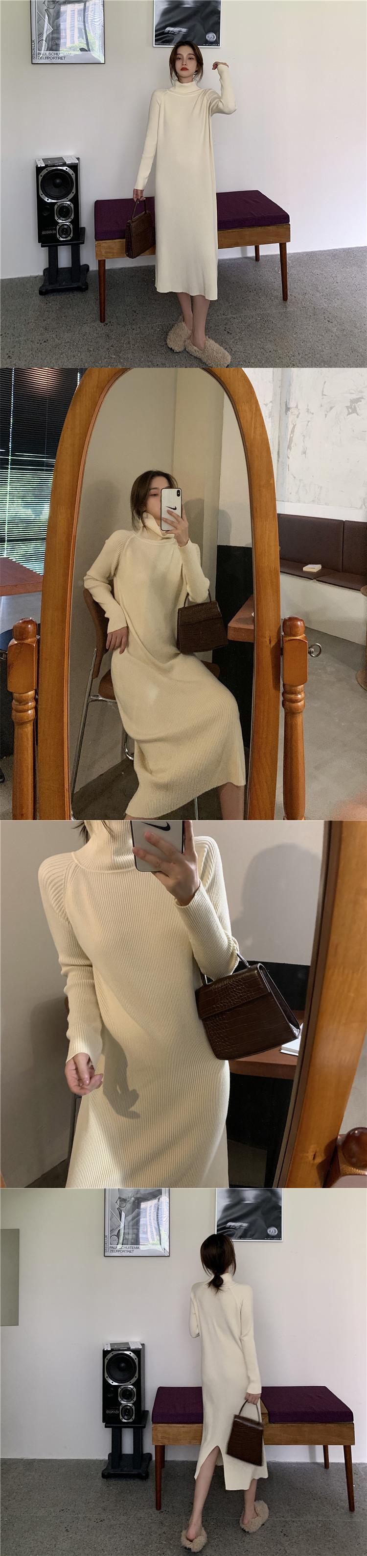 -ネックインナーベーススカートレディース2020年秋新バージョンのスプリットニットセータースカートルーズスモールロングスカート クレセントシティ58775241273