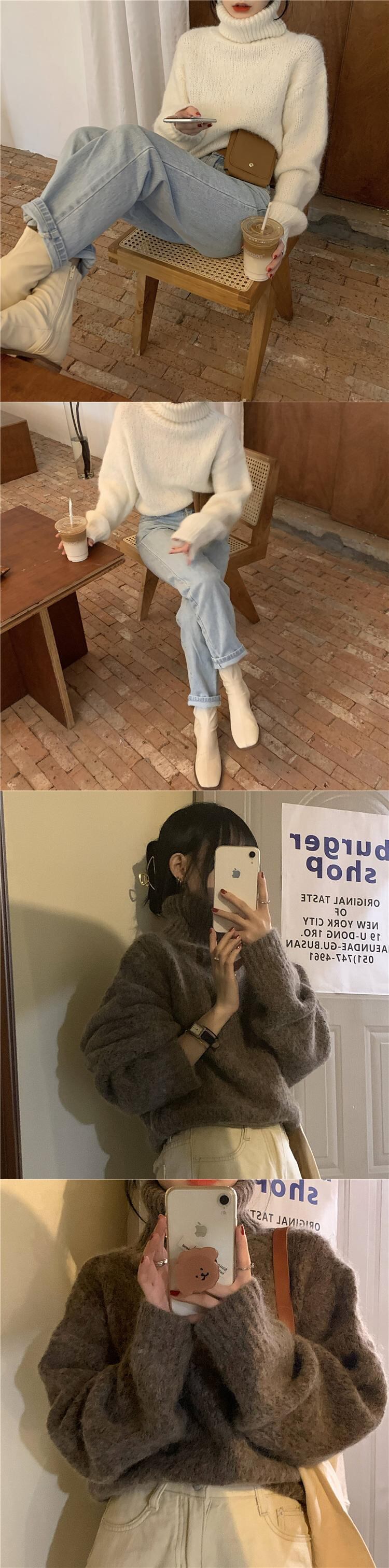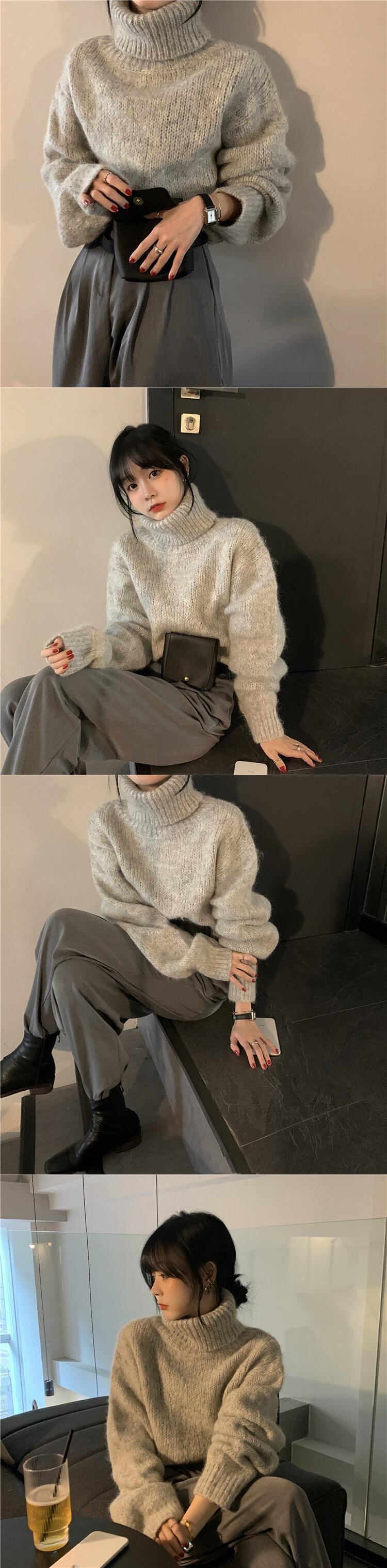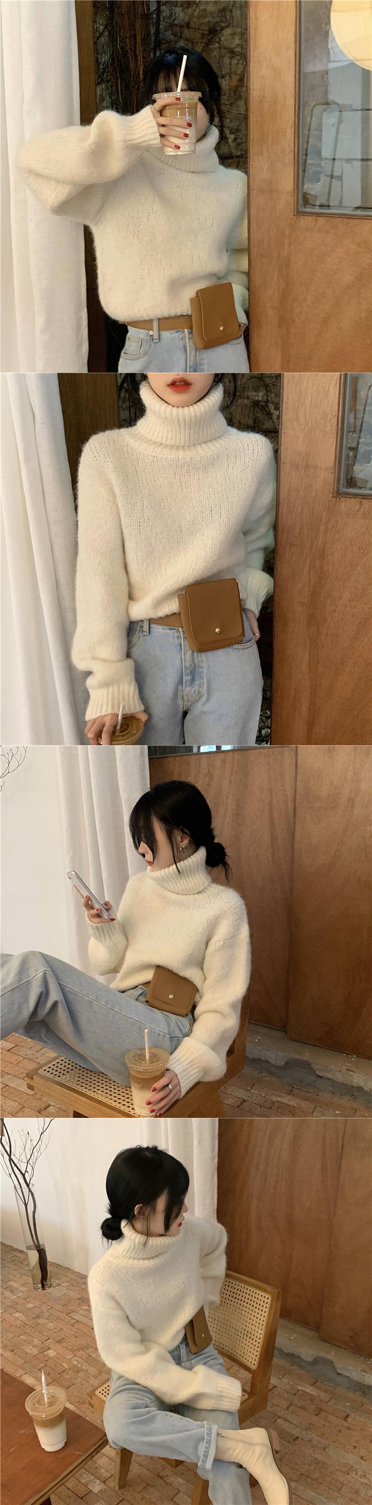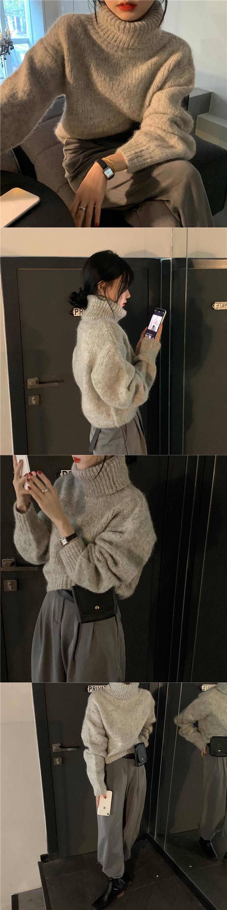 2020年秋冬新作スタイルウォームショートハイウエストロングスリーブタートルネックセーターレディースルーズウォームニットトップス クレセントシティ28656164172