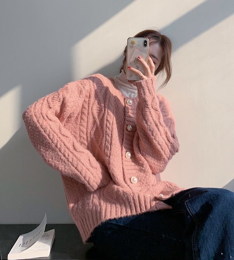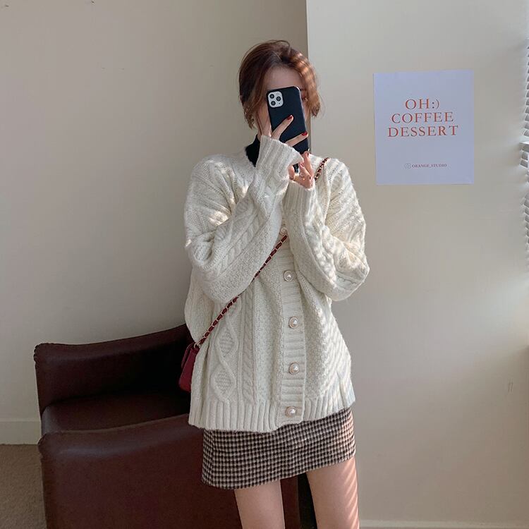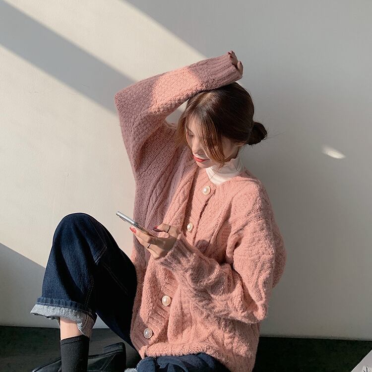 ニットカーディガンの女性の2020年秋冬のルーズで怠惰な気質の新しいバージョンは薄いシングルブレストのセーターコートでした クレセントシティ52864975139