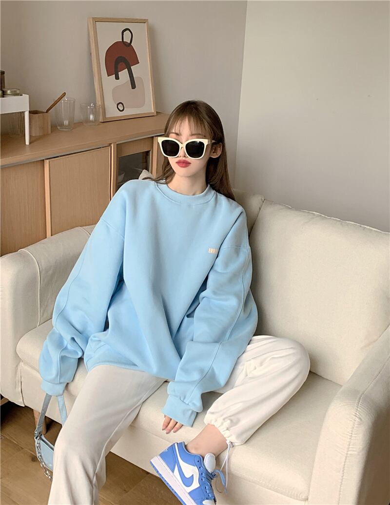 カップルの友達のブラウス女性2020年秋冬ルーズクリームカラーの新バージョンとベルベットの文字刺繍ラウンドネックセーター クレセントシティ33514997787