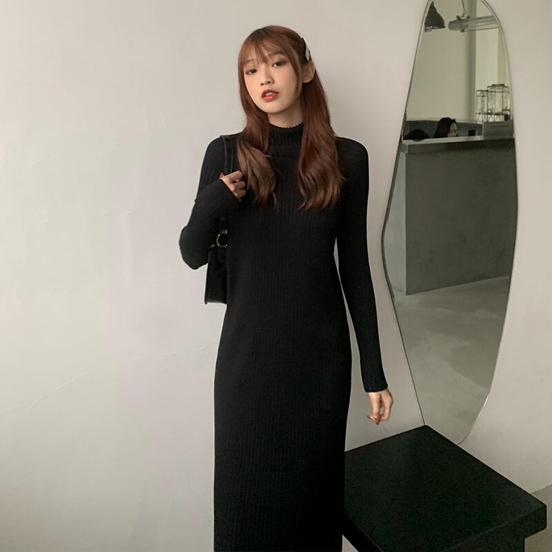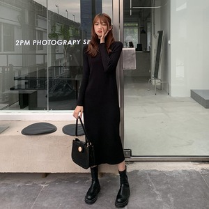 クレセントシティ秋冬ネックルーズレイジーシックニットベース長袖セータードレスレディースミドル丈 クレセントシティ86190458929