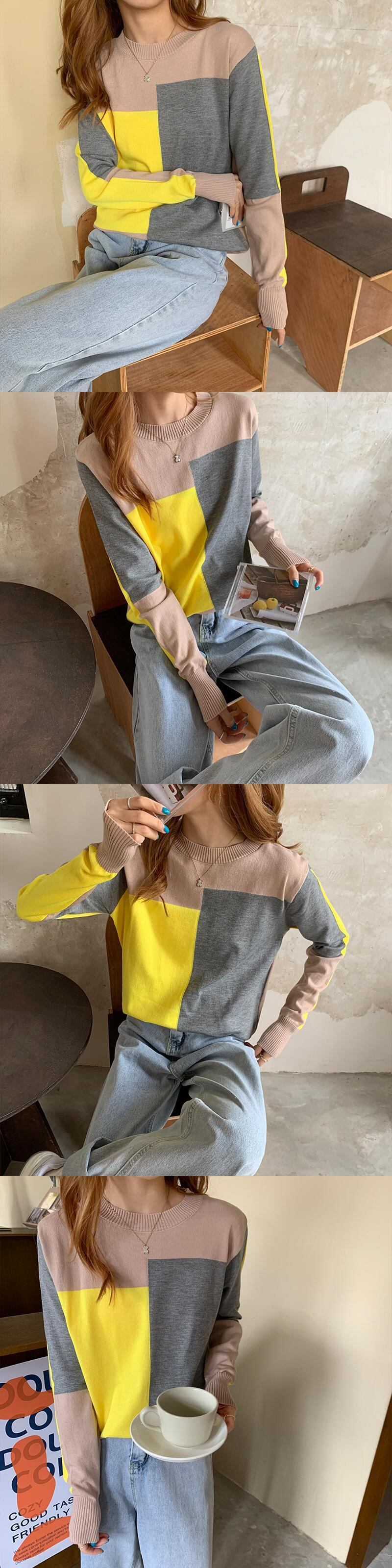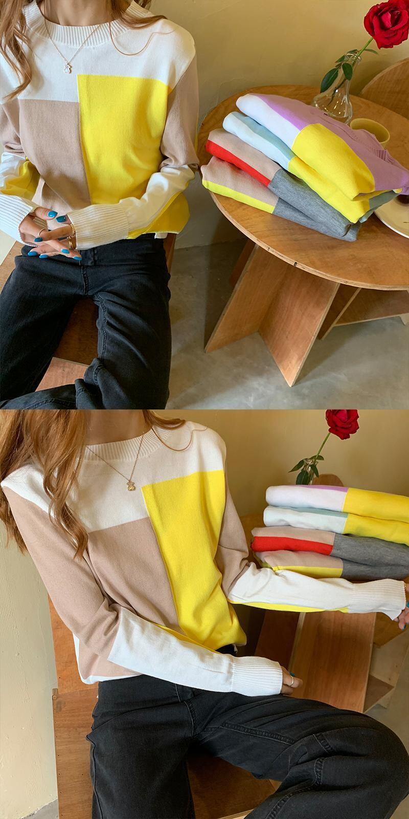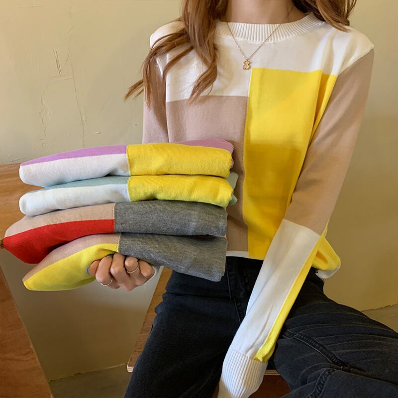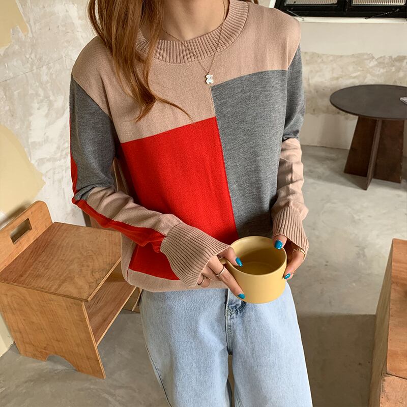 クレセントシティカラーマッチングセーター女性ルーズアウター秋冬スタイルワイルド長袖プルオーバーセータートップ クレセントシティ90530754856