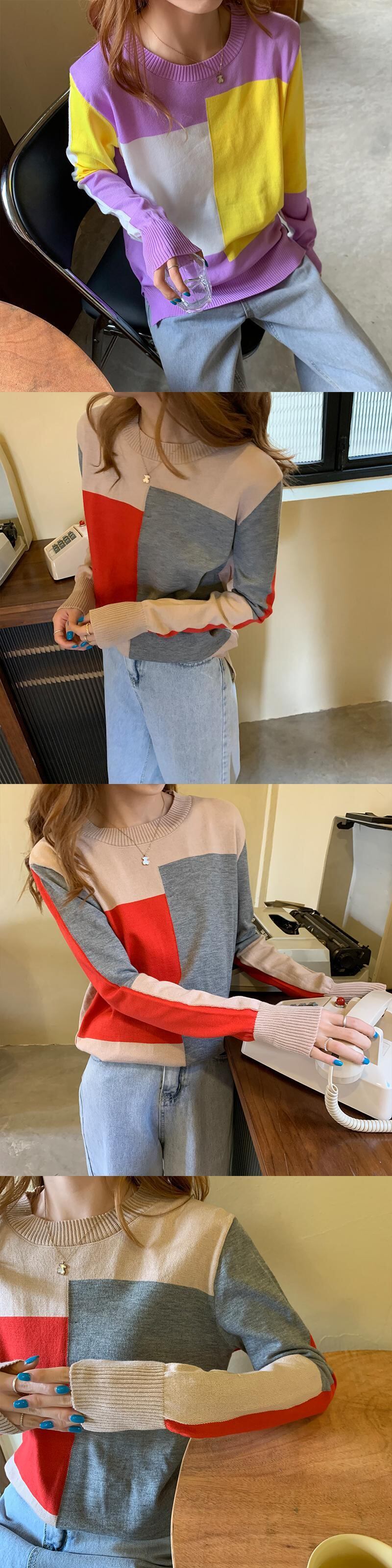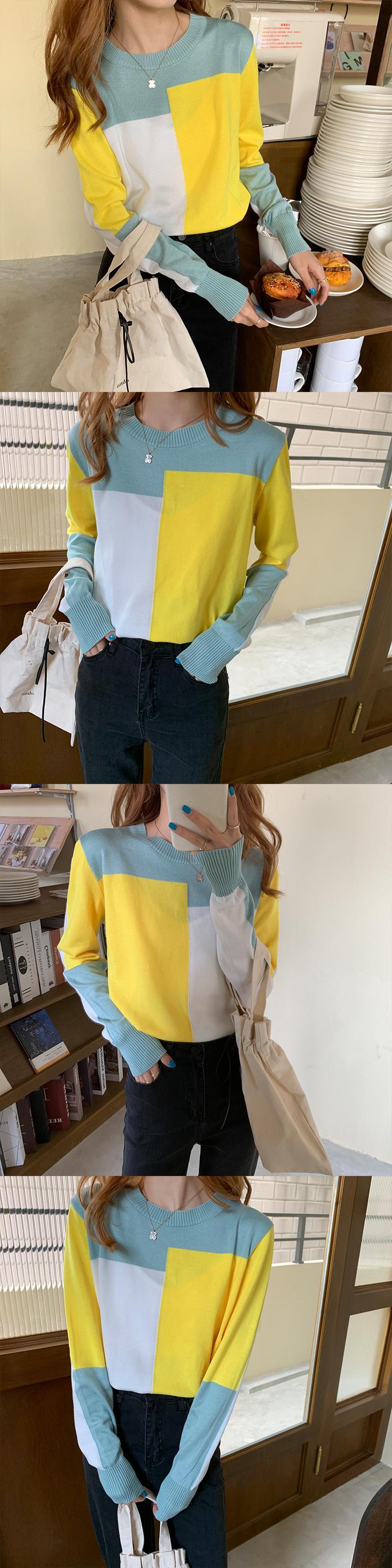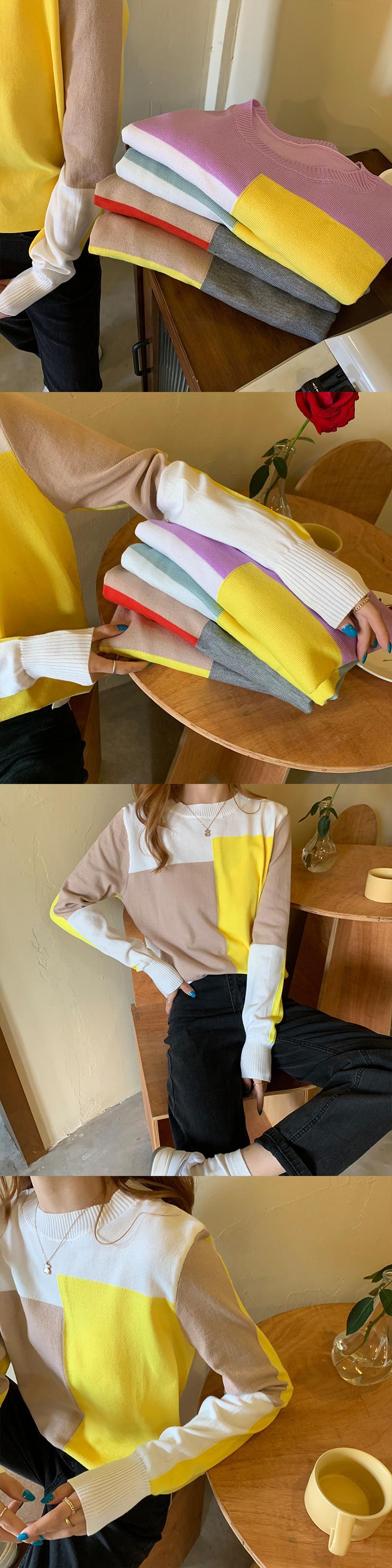 クレセントシティカラーマッチングセーター女性ルーズアウター秋冬スタイルワイルド長袖プルオーバーセータートップ クレセントシティ90530754856