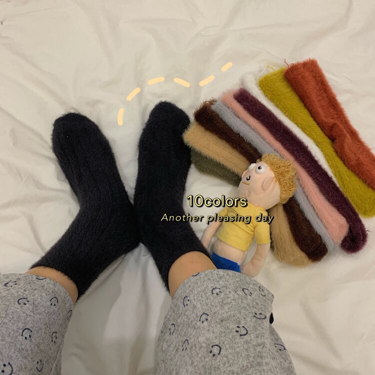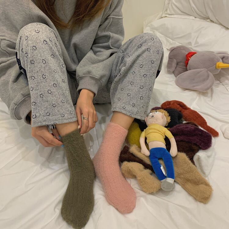 ぬいぐるみソックス女性の2020年秋冬新しいカジュアルな無地の暖かいシンプルなホームソックス、チューブソックス、ソックス クレセントシティ48538534852