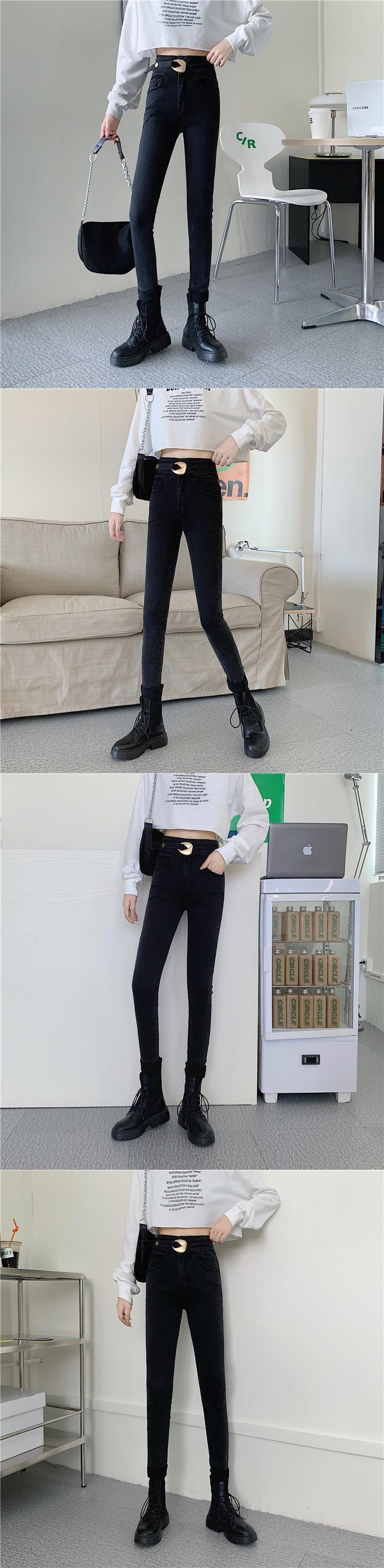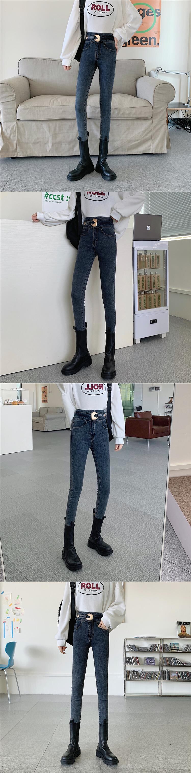 -ウエストジーンズの女性の2020年秋冬の新バージョンはスリムで年齢を減らす伸縮性のあるスリムな足のパンツでした クレセントシティ4383188944