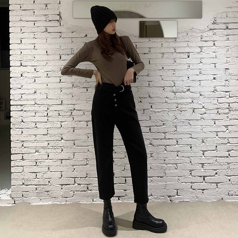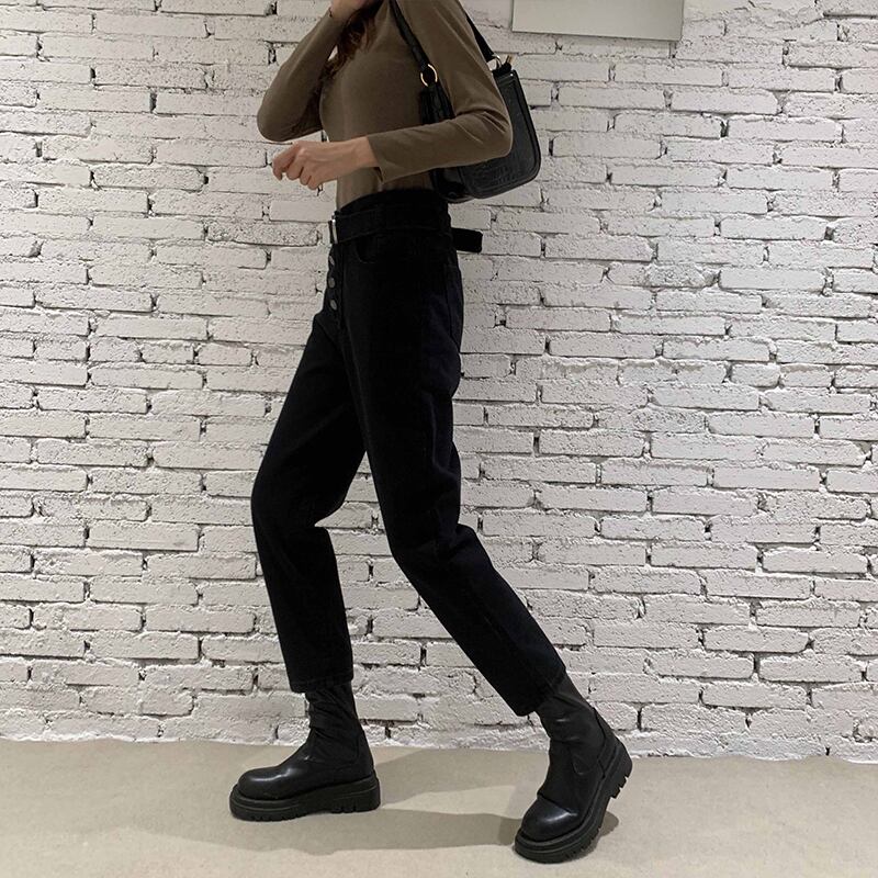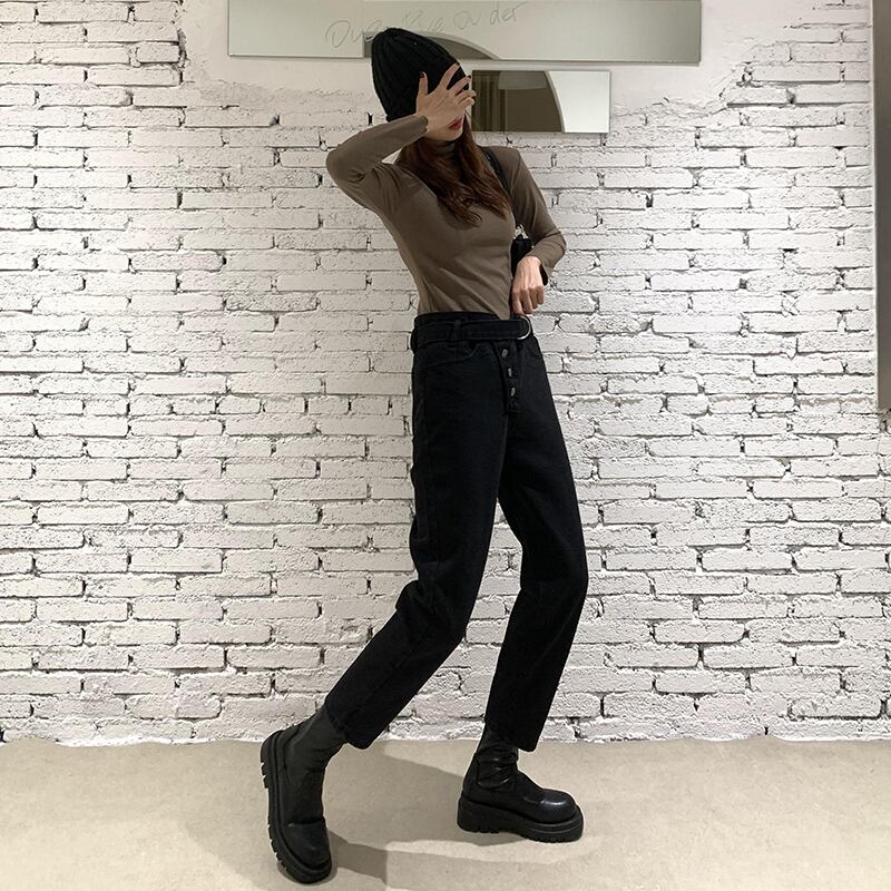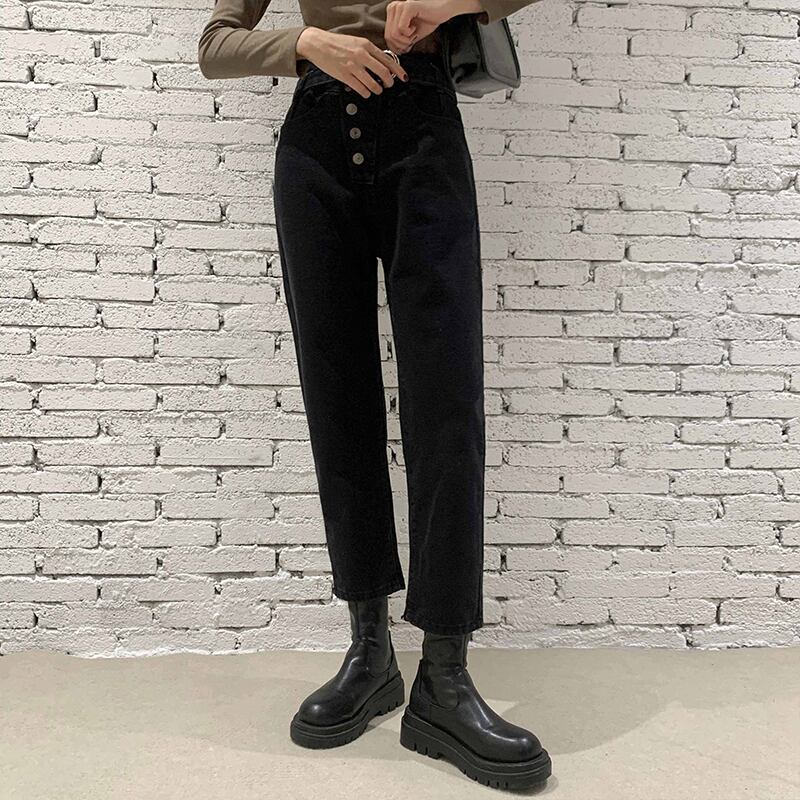 クレセントシティシングルブレストジーンズウィメンズ2020ニューバージョンルーズワイルドストレートレッグパンツハイウエストスリムナインポイントパンツ クレセントシティ57951243815