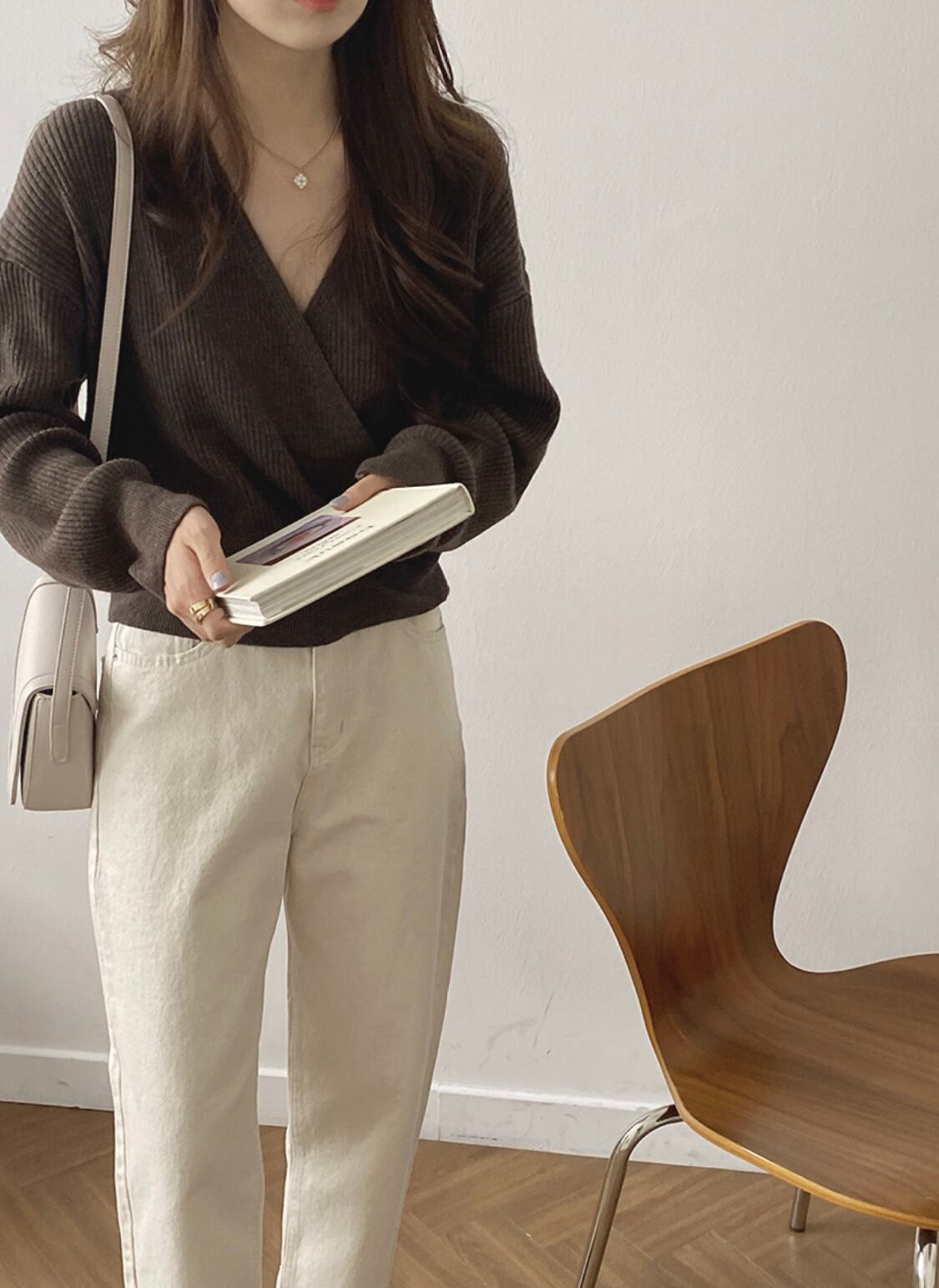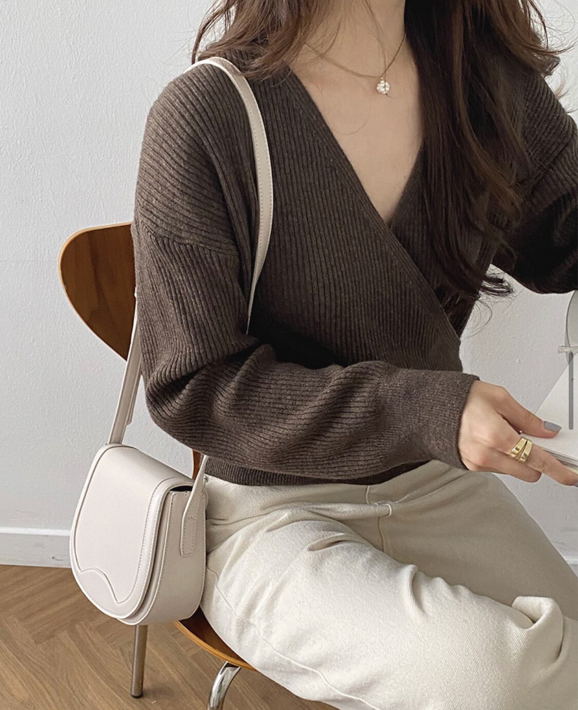 優しいスタイルの気質ニットトップデザイン女性のVネック斜め襟2020年秋バージョンのシックなルーズセーターイン クレセントシティ37126823463