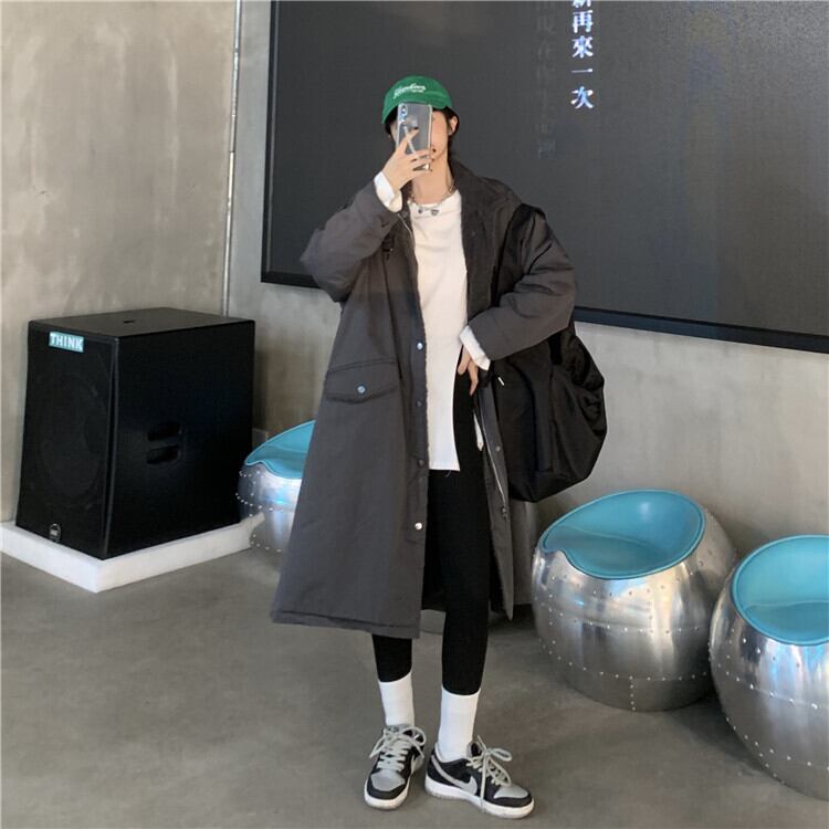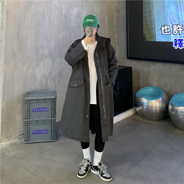 秋冬グレーウォームコート2020ニュースタイルぬいぐるみラペルルーズスモールロングパッド入りジャケットレディース クレセントシティ82664063018