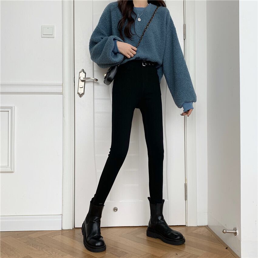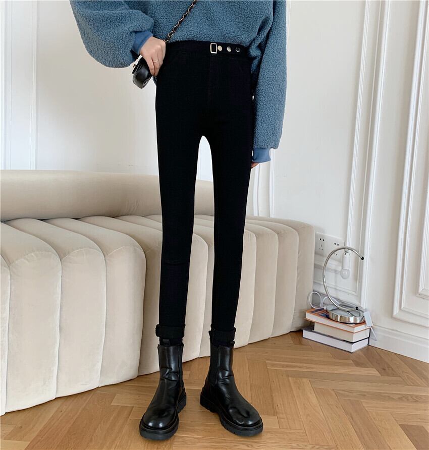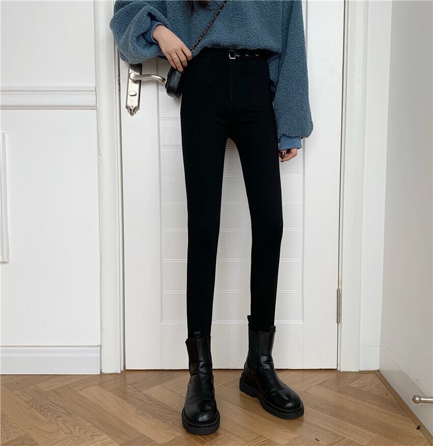 -ウエストジーンズの女性は薄くて小さい2020年秋冬の黒レギンスアウターウェア小足プラスカシミアペンシルパンツトレンド クレセントシティ37538208746