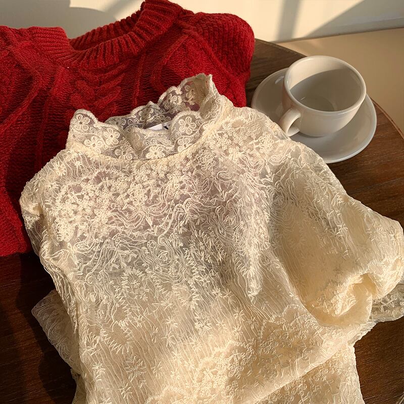 クレセントシティレースボトミングシャツレディース秋冬ウェア2020新しいスタイルのワイルドオールマッチネットヤーンは屋外で着用できます クレセントシティ74097334080