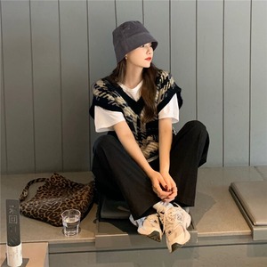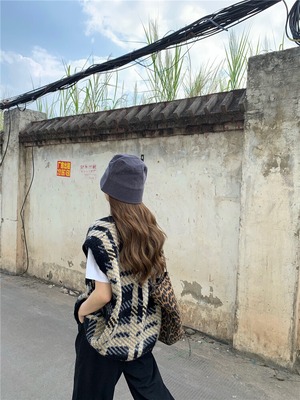 Vネックルーズニットベスト女性の2020年秋冬バージョン新しいレトロチェック柄スタックベストベストジャケットイン クレセントシティ78057042935