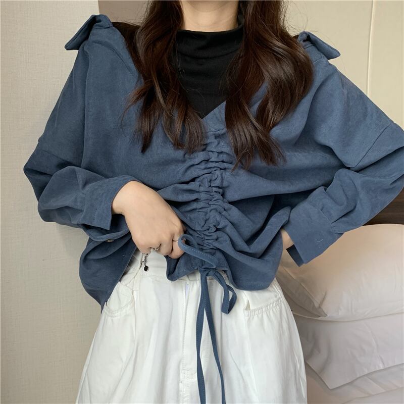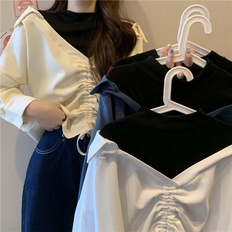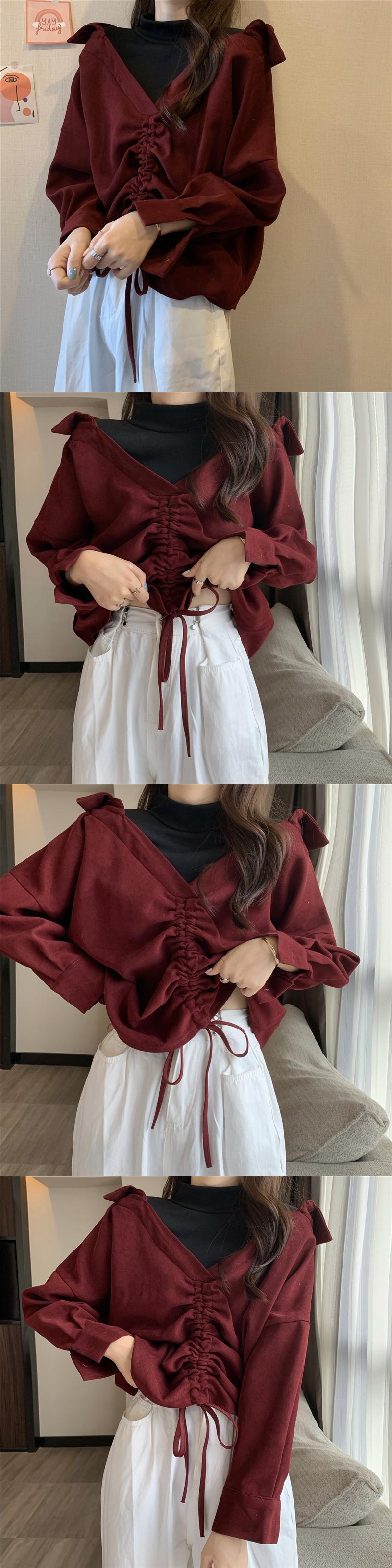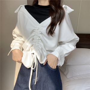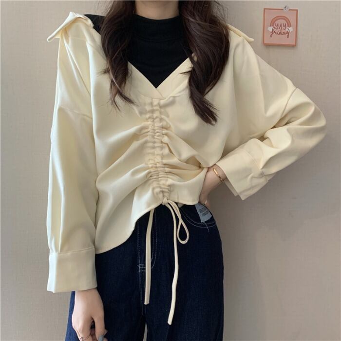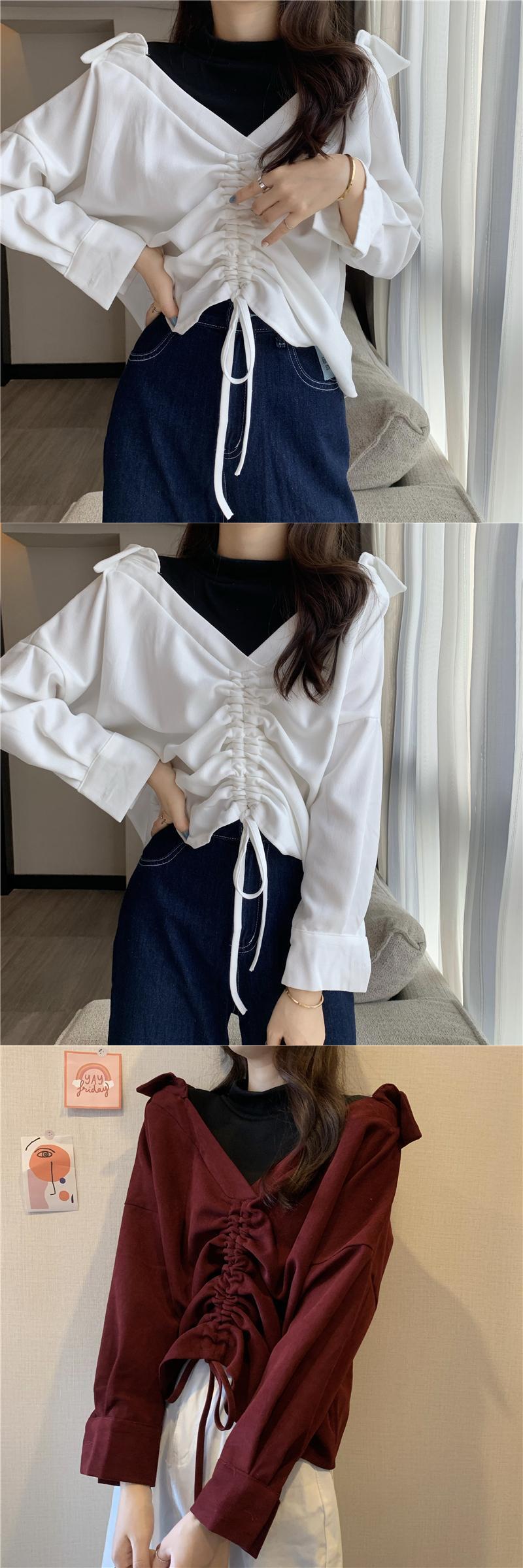 2020年秋冬新バージョンルーズファッションシンBFフェイクツーピース巾着ステッチデザインセンスVネックセーターレディース クレセントシティ35381903544