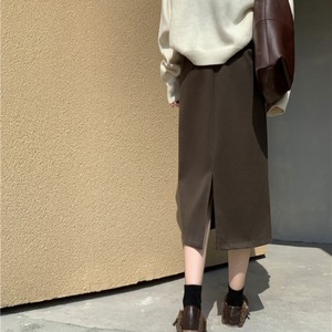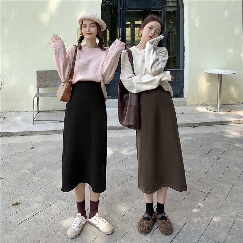 ピュアカラースカート女性2020年秋冬新作ミドル丈ハイウエストカジュアルバックスプリットAラインウールスカート クレセントシティ57568729768
