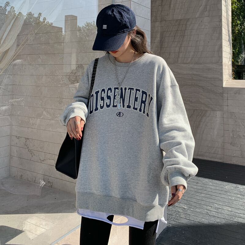 レタープリントのバージョンとベルベットの暖かいセーターの女性2020年秋冬新しいルーズレイジーラウンドネックプルオーバートップトレンド クレセントシティ23410792540