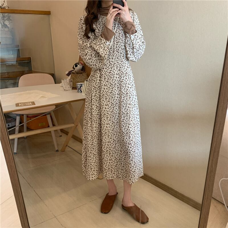 軽く調理されたフローラルスカートの女性のインナーウェア2020年秋冬プリーツタイウエストシフォンスカートミドル丈ドレス クレセントシティ36136943870