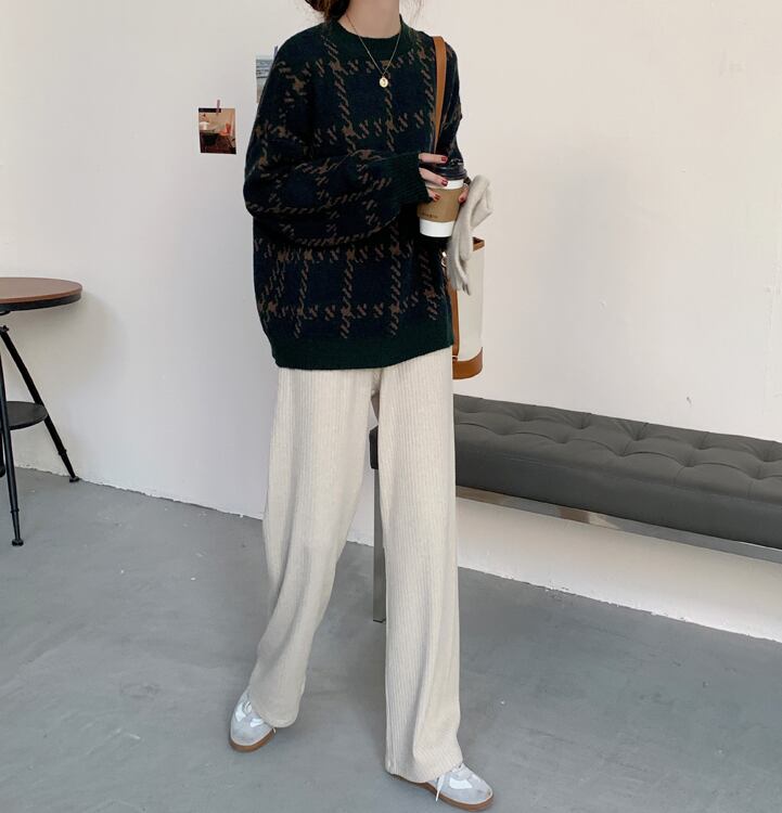 コーデュロイカジュアルパンツレディース2020年秋冬ハイウエストスリミングプリーツデザインセンスストレートレッグパンツワイドレッグパンツ クレセントシティ82547869923