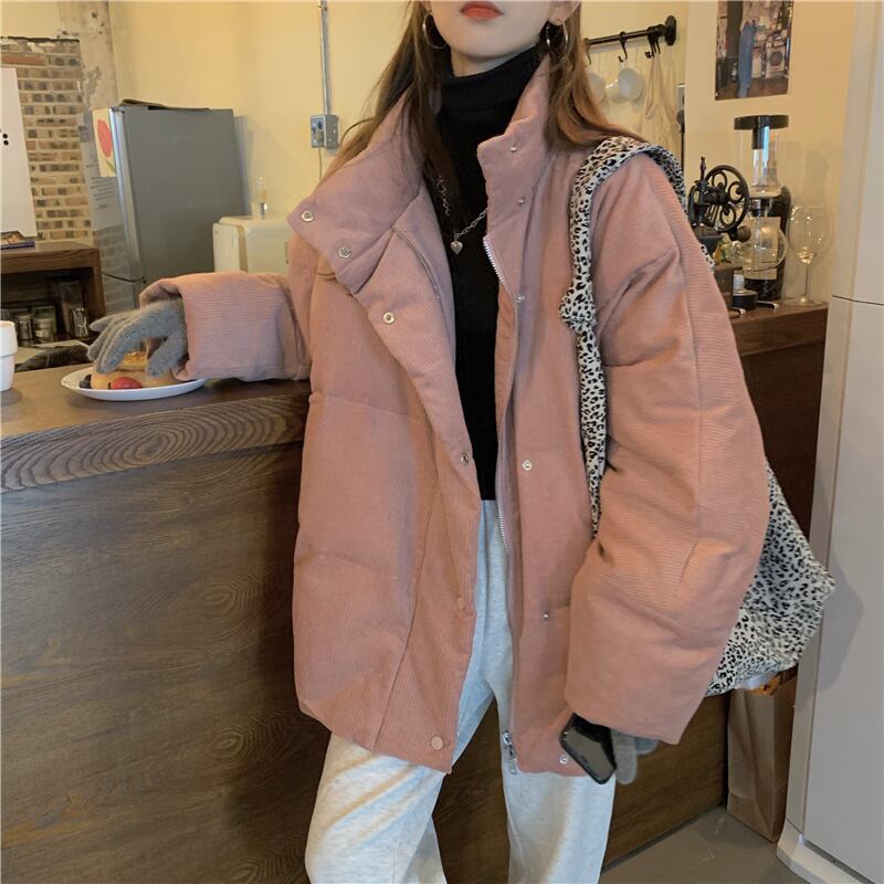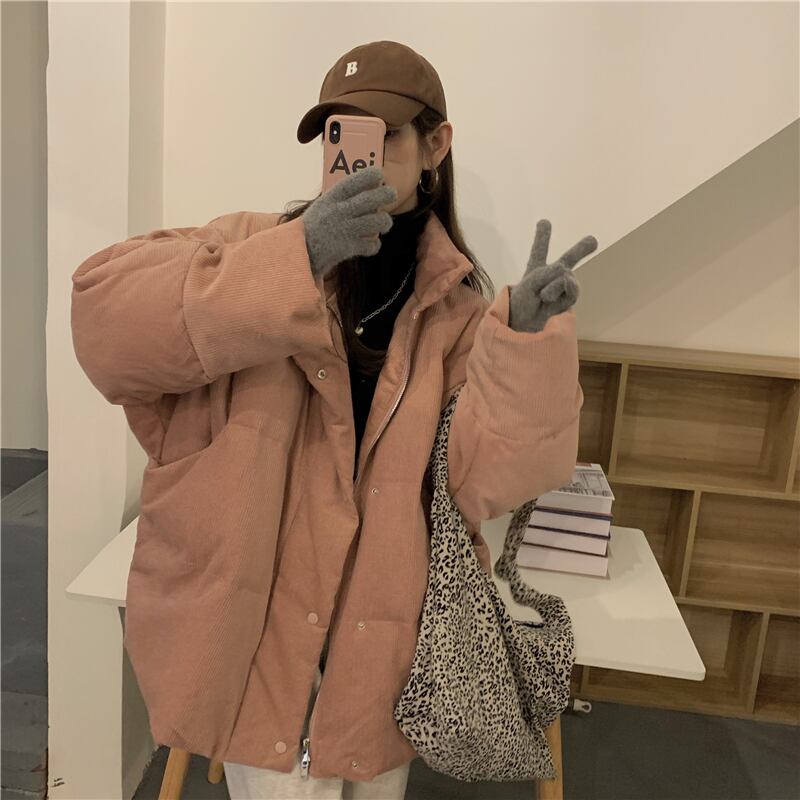 ビッグポケットピンクのコーデュロイコットンジャケットのバージョン2020年秋冬の新しい厚手のキルティングジャケットの女性はルーズで暖かい クレセントシティ26837329332