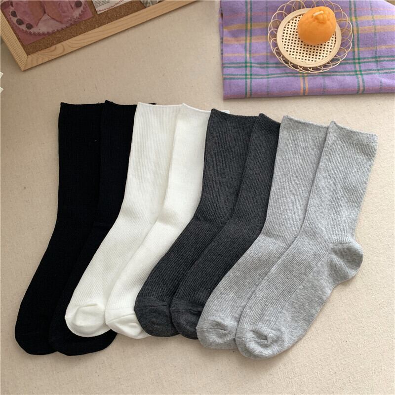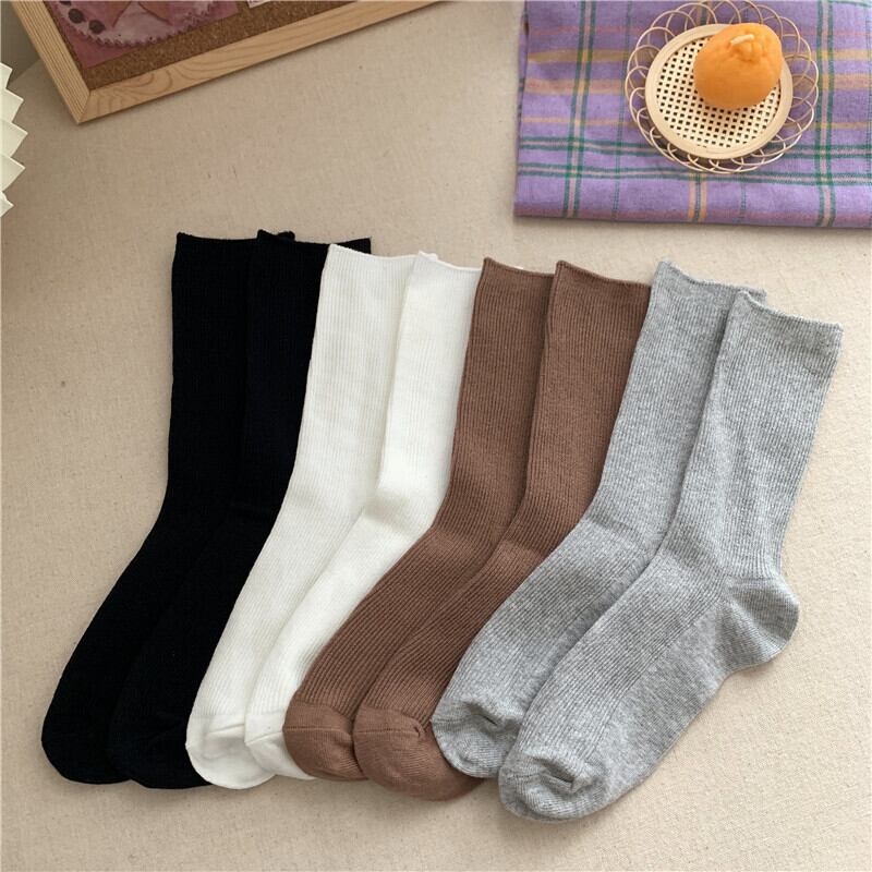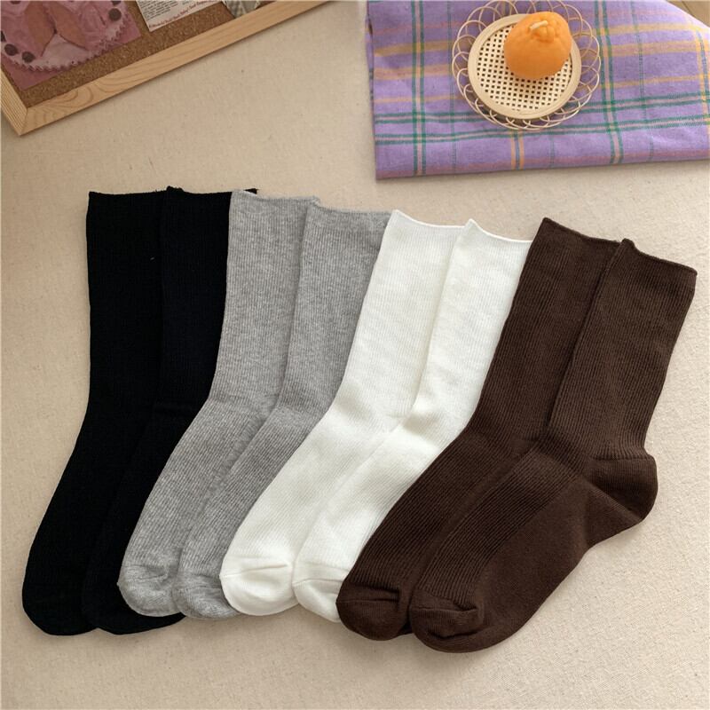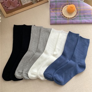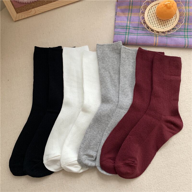 ピュアカラーソックス女性2020年秋冬新入生ミドルチューブソックスレディースハイストレッチロングチューブコットンソックス4足 クレセントシティ76391905472