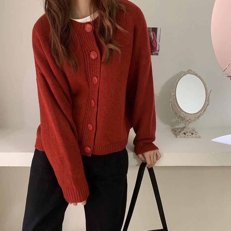 クレセントシティのセーター女性レトロ2020年秋冬新しいルーズレイジーブラウスオールマッチニットカーディガンジャケット クレセントシティ51507132021