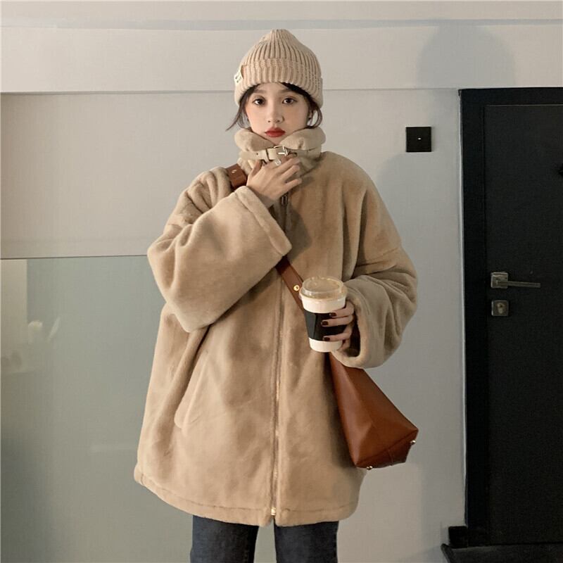 秋冬の学生カジュアルコート2020新バージョンのルーズなスタンドカラーの厚みに加え、ベルベットの暖かい豪華なジャケットの女性 クレセントシティ34671457215