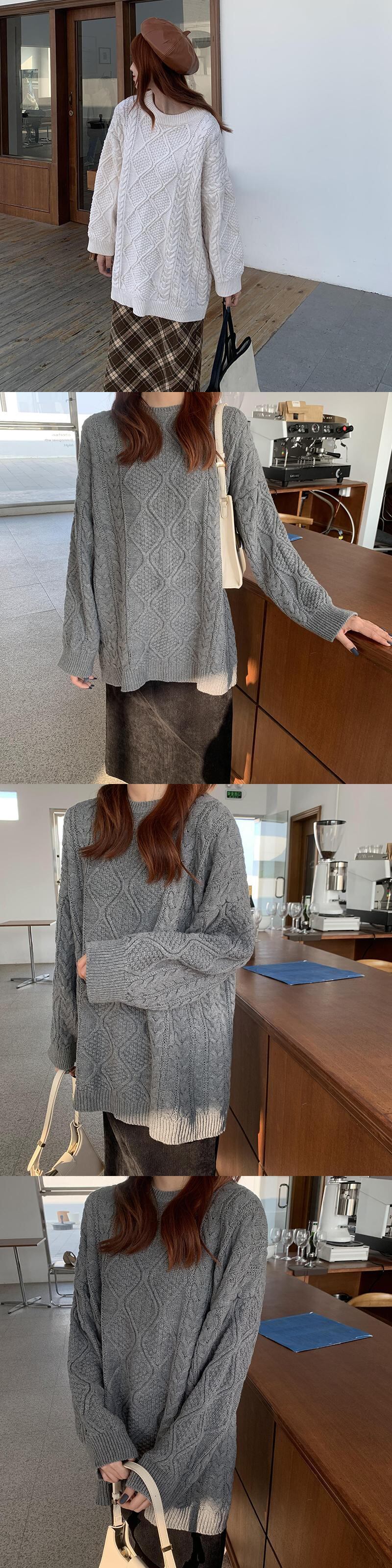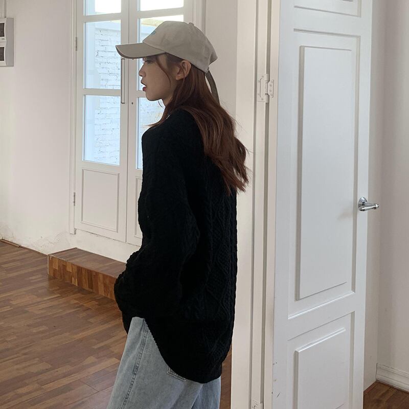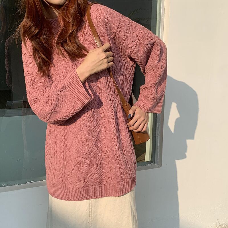 クレセントシティセーターレディースミッドレングス2020秋冬新バージョンルーズレイジーウィンドツイストプルオーバーセーター クレセントシティ86011146370