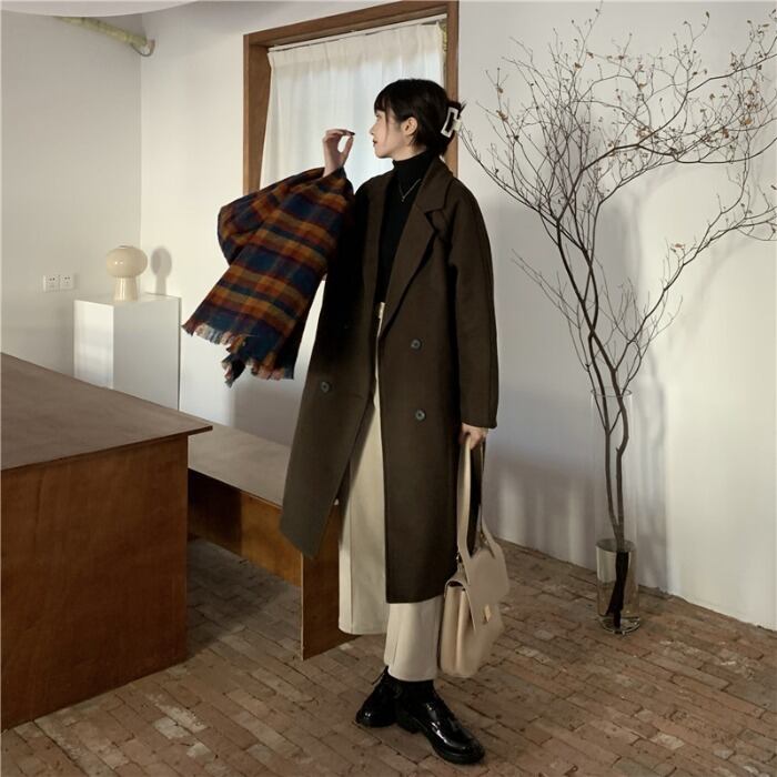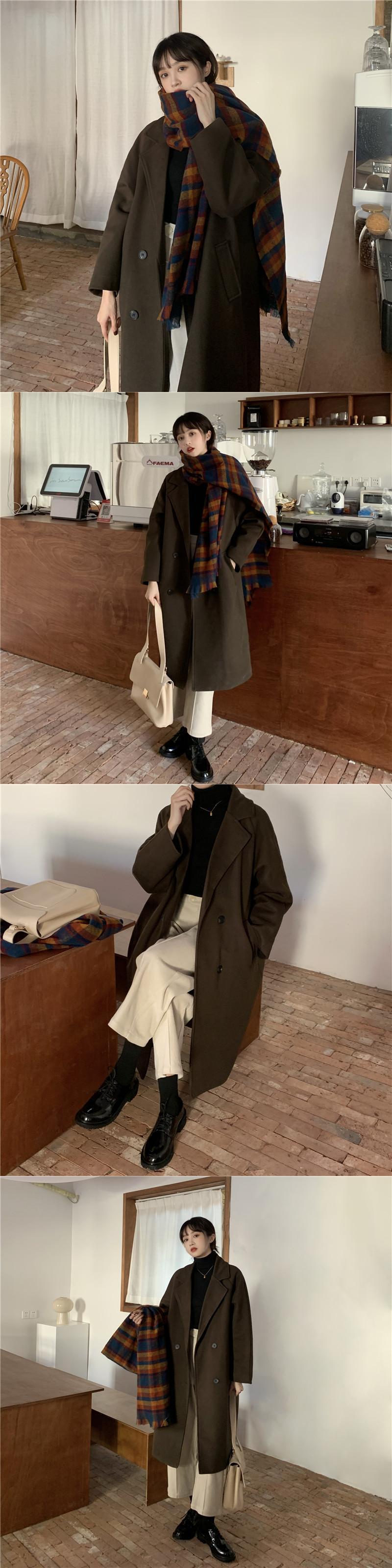 秋冬ダブルブレストカジュアルコートタイド2020気質ミドル丈厚手のキルティングウールコート女性ルーズ クレセントシティ10062763243