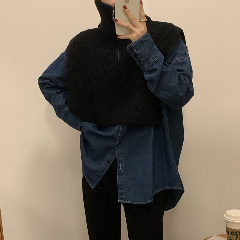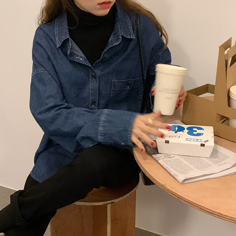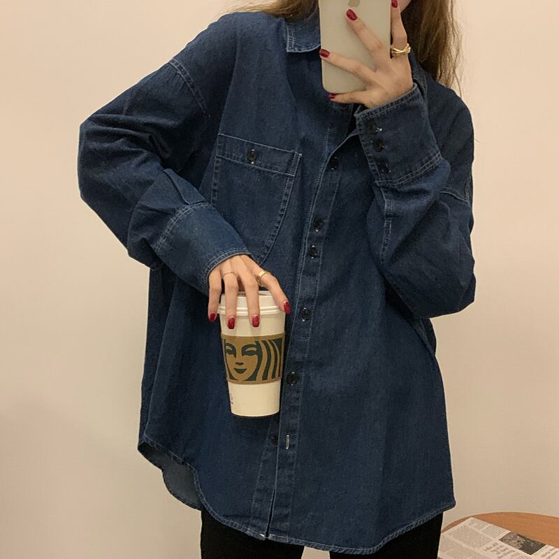レトロブルーデニムシャツ女性デザインセンスニッチ2020年秋新バージョンルーズで薄いミドル丈ジャケット クレセントシティ72278744784