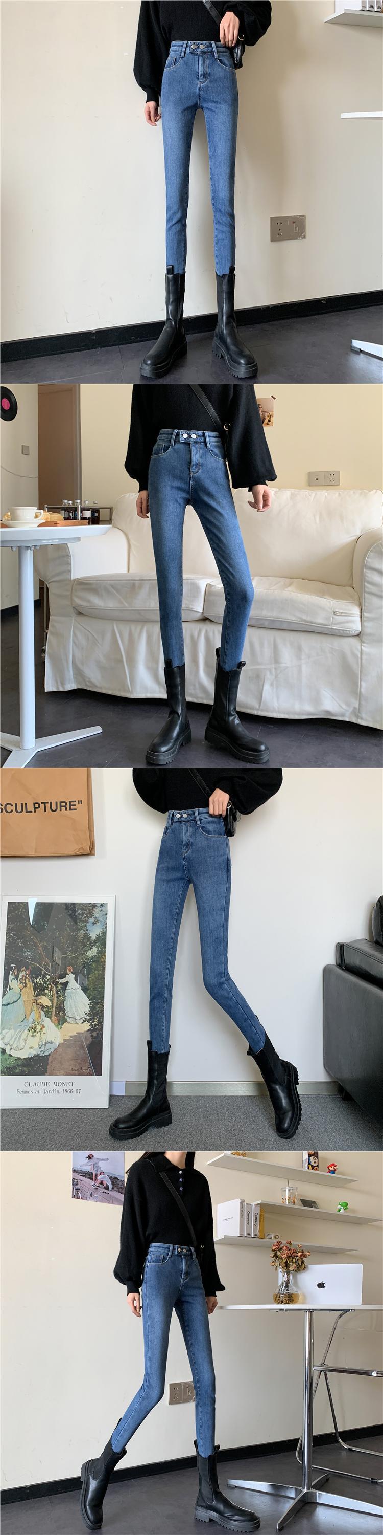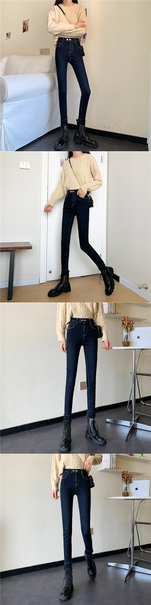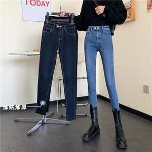 ジーンズの女性の2020年秋冬のハイウエストの細いストレートストレッチとベルベットの厚いスキニーロングパンツのトレンドの新しいバージョン クレセントシティ62201963858