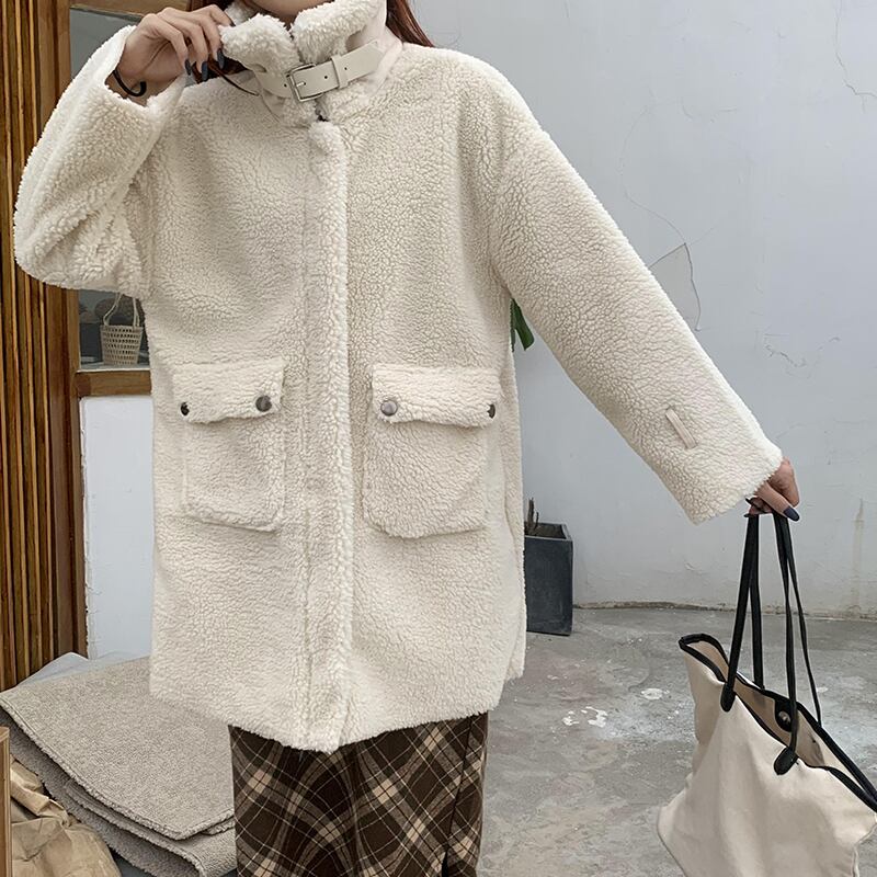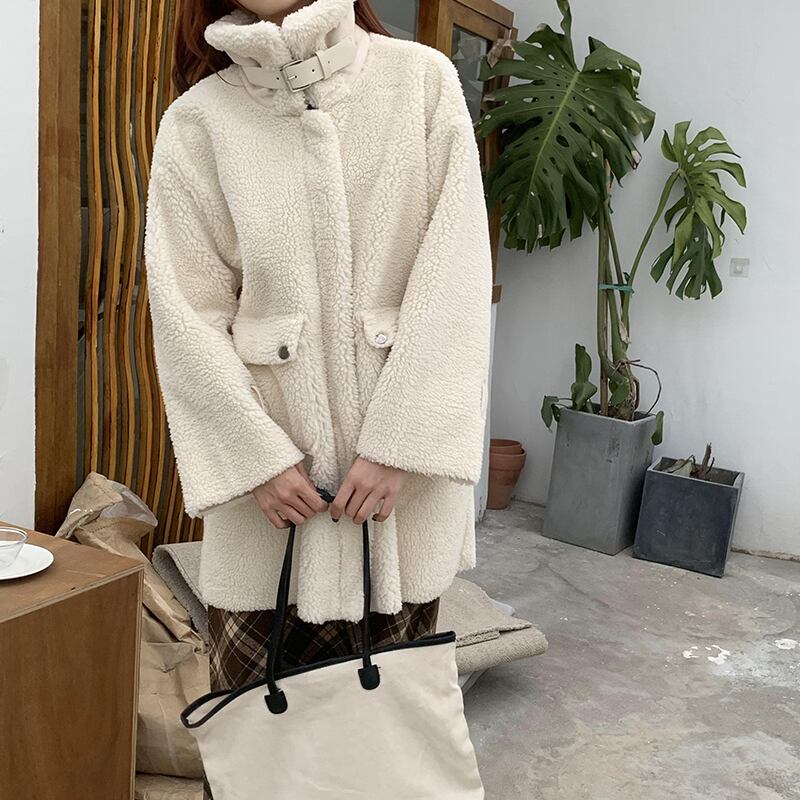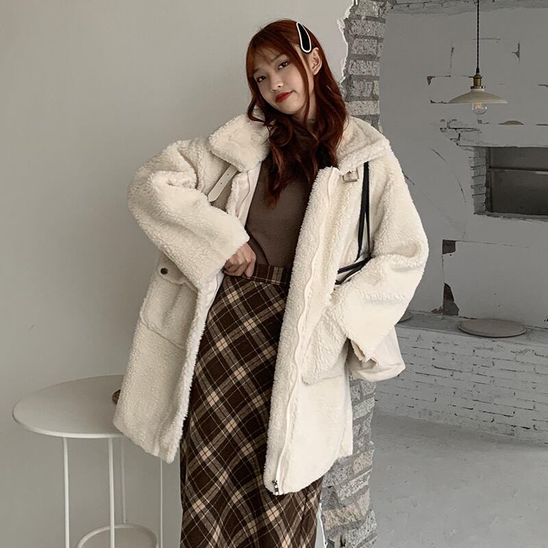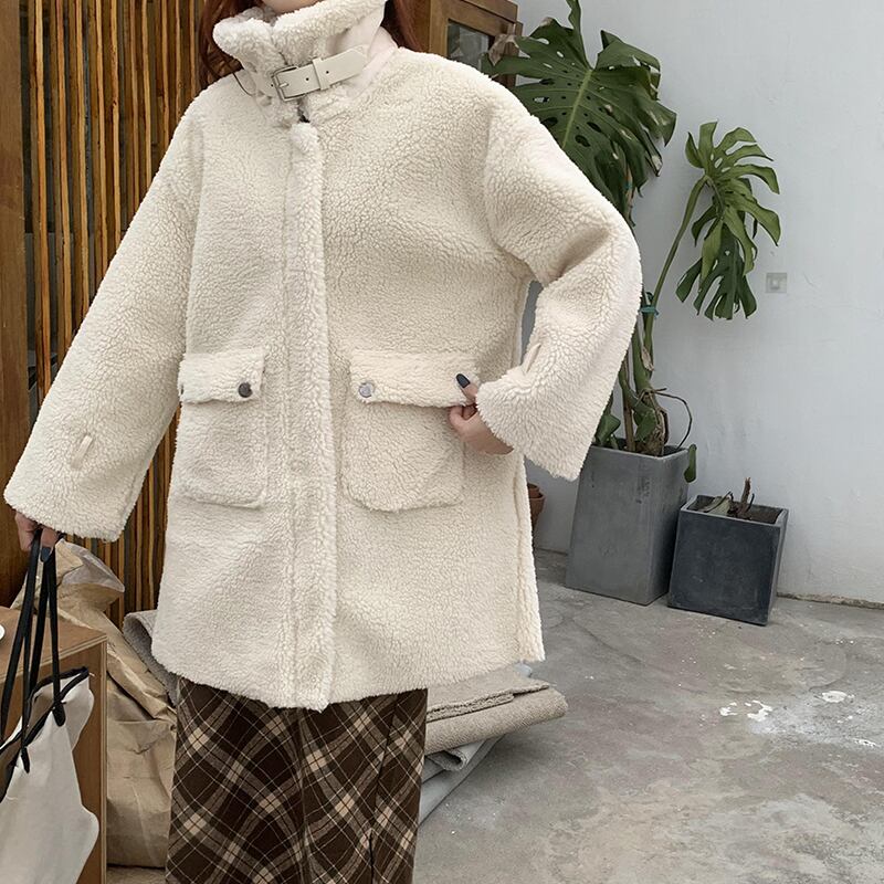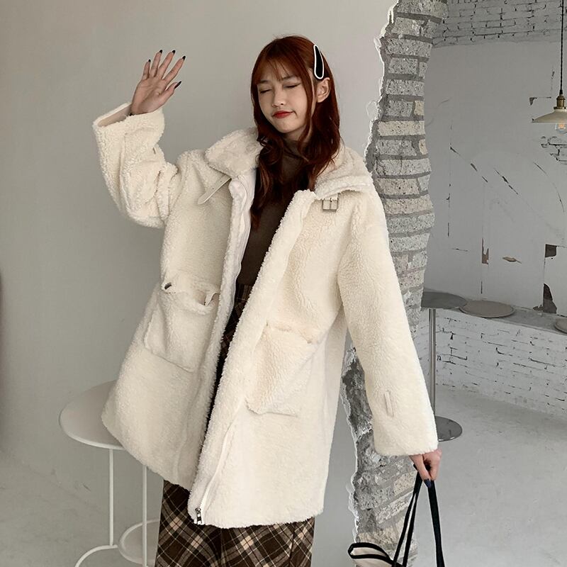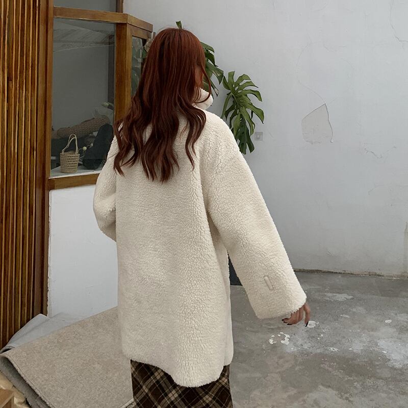 クレセントシティラムズウールジャケットウィメンズミドルレングス冬2020バージョンルーズシックニングウォームぬいぐるみトップ クレセントシティ98203049512