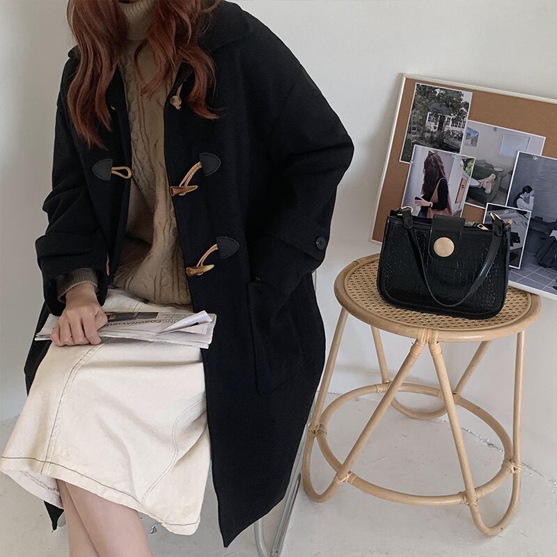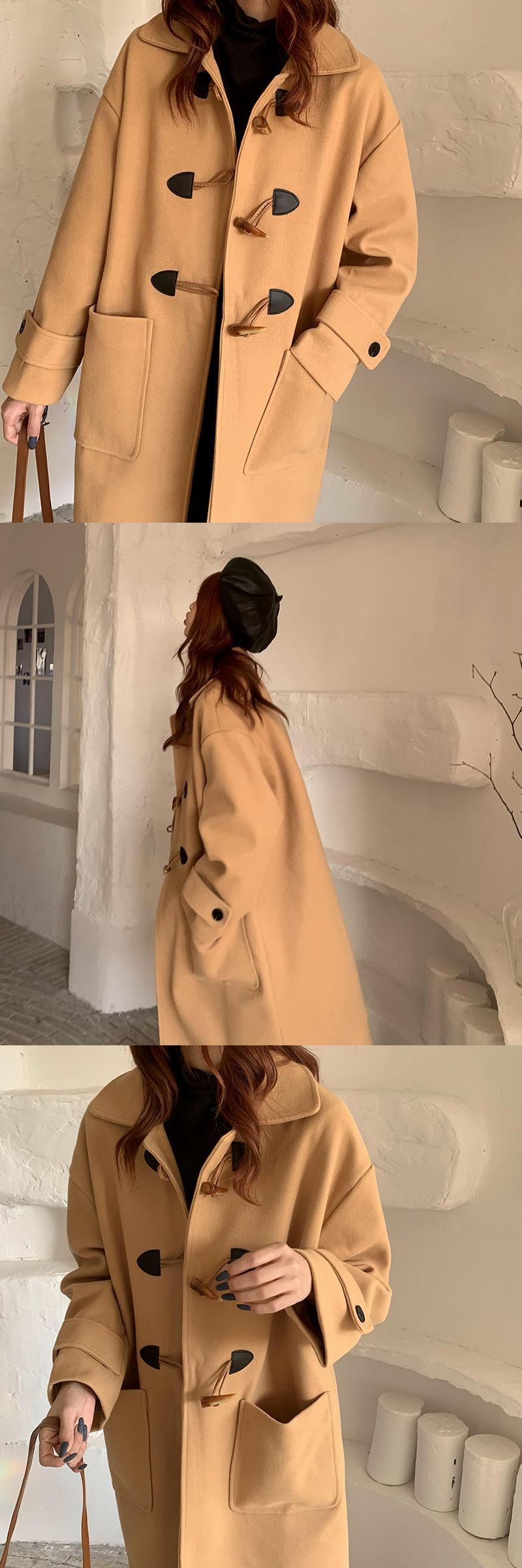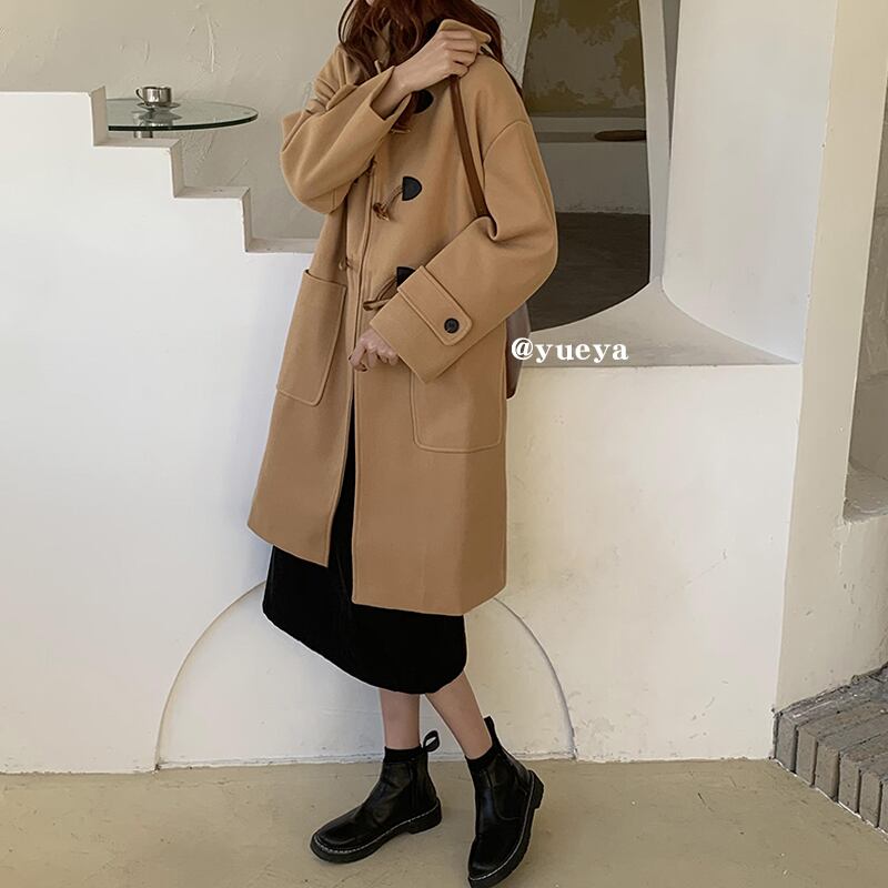 クレセントシティホーンバックルウールコート女性2020年冬新しいルーズシックミドル丈ウールコートトレンド クレセントシティ74277571147
