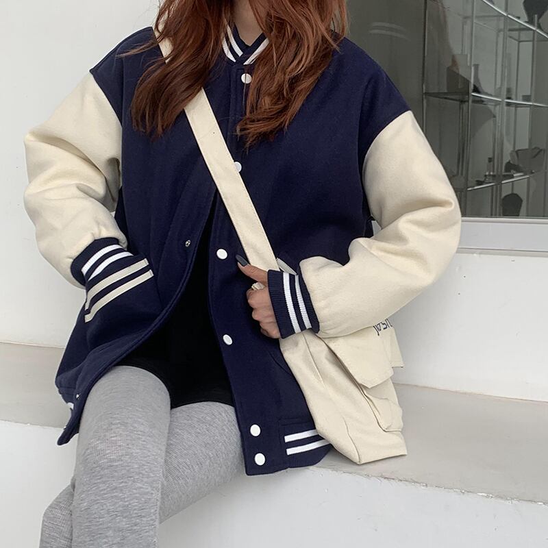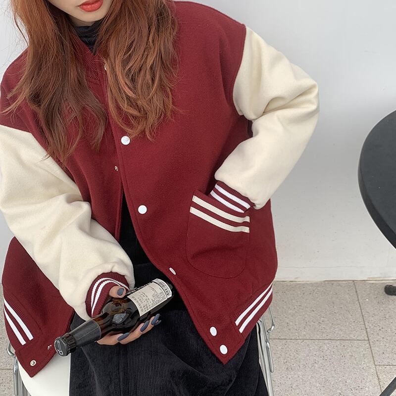 クレセントシティコントラストカラー野球女子2020年秋冬バージョンルーズレトロシックスポーツジャケットトップ クレセントシティ96544363497