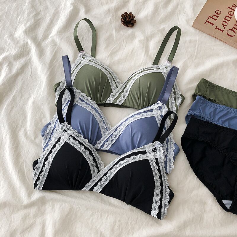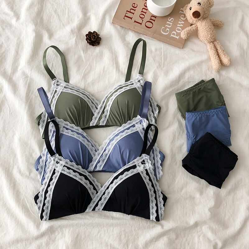 クレセントシティ下着女性用ノンワイヤーリングスモールチェストギャザリングアジャスタブル2020ミッドウエストシームレスパンティーブラセット クレセントシティ65865576311