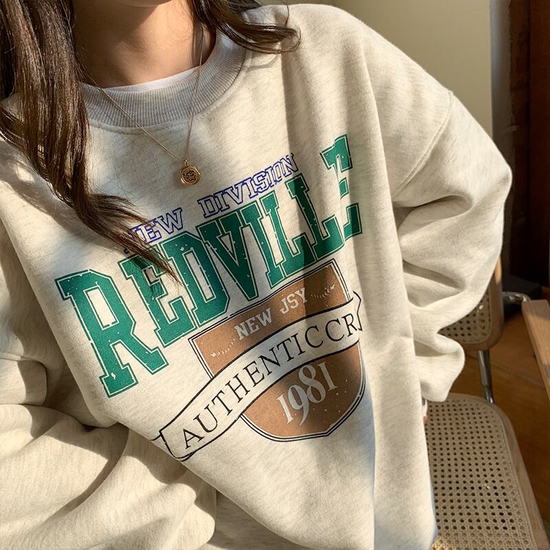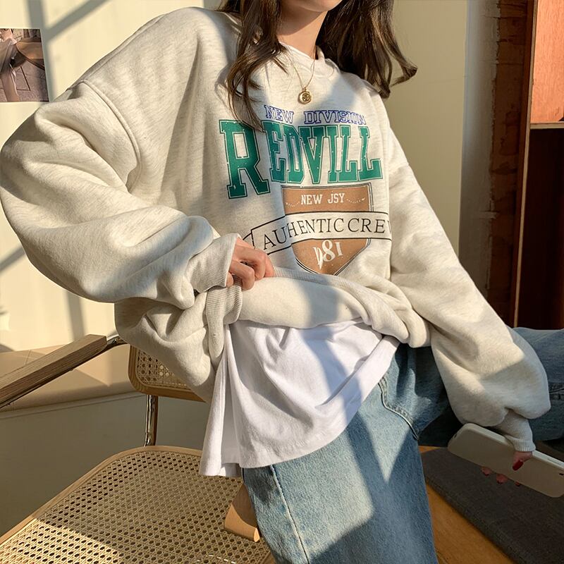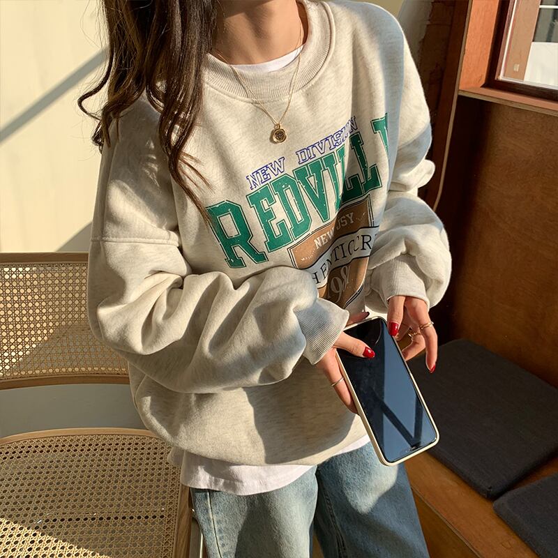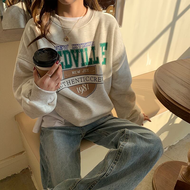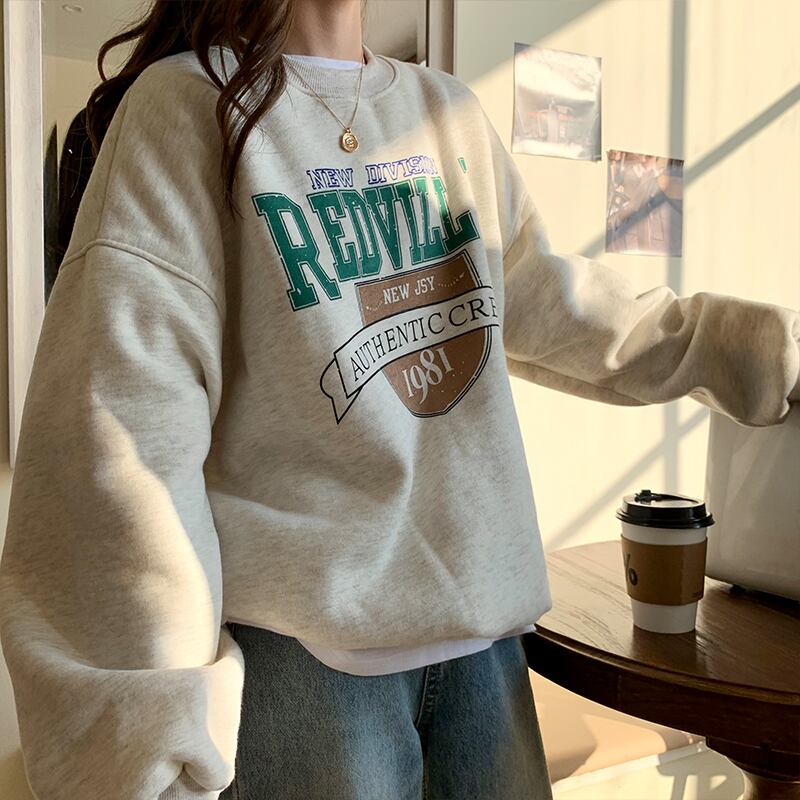 クレセントシティレイジーウィンドセーターウィメンズ2020秋冬スタイルルーズプラスベルベットヘッジ学生プリントトップ クレセントシティ66372121717