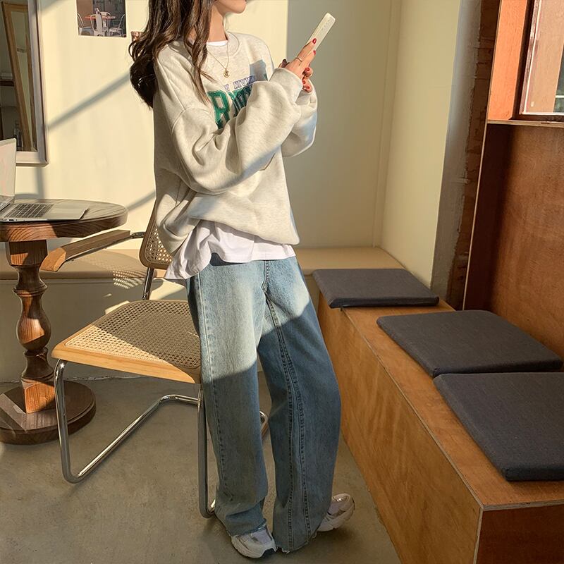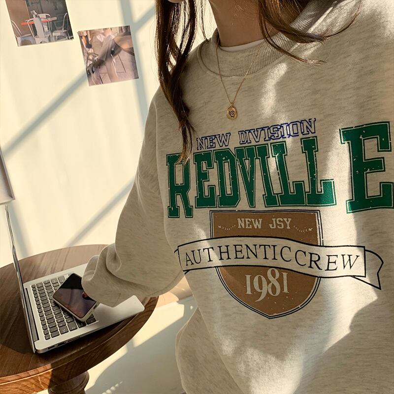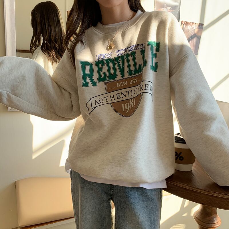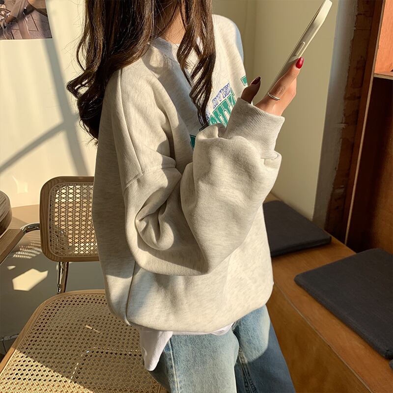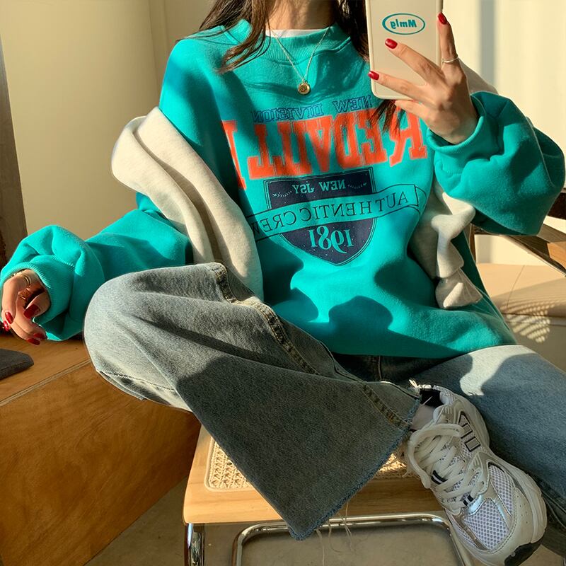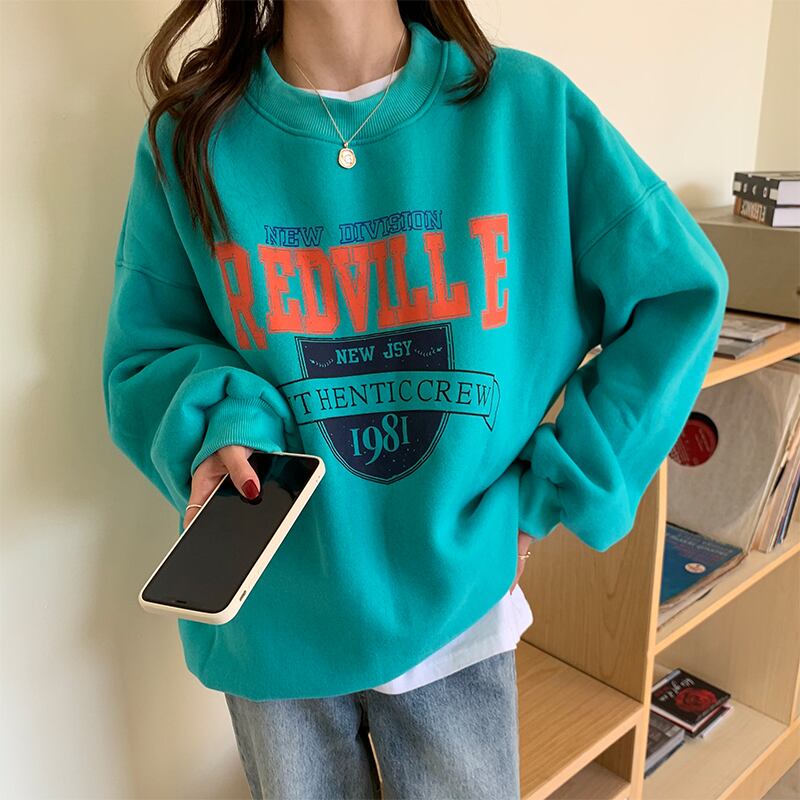 クレセントシティレイジーウィンドセーターウィメンズ2020秋冬スタイルルーズプラスベルベットヘッジ学生プリントトップ クレセントシティ66372121717