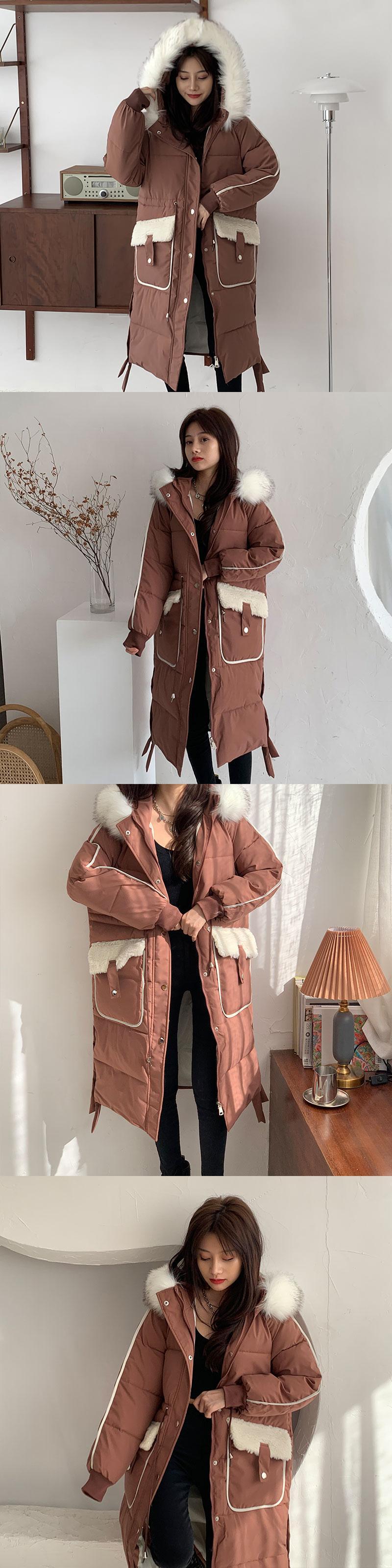 クレセントシティビッグファーカラーコットンパッド入りジャケットレディースミドル丈オーバーザニージャケット2020年冬新しいルーズパッド入りコットンパッド入りジャケット クレセントシティ92417941061
