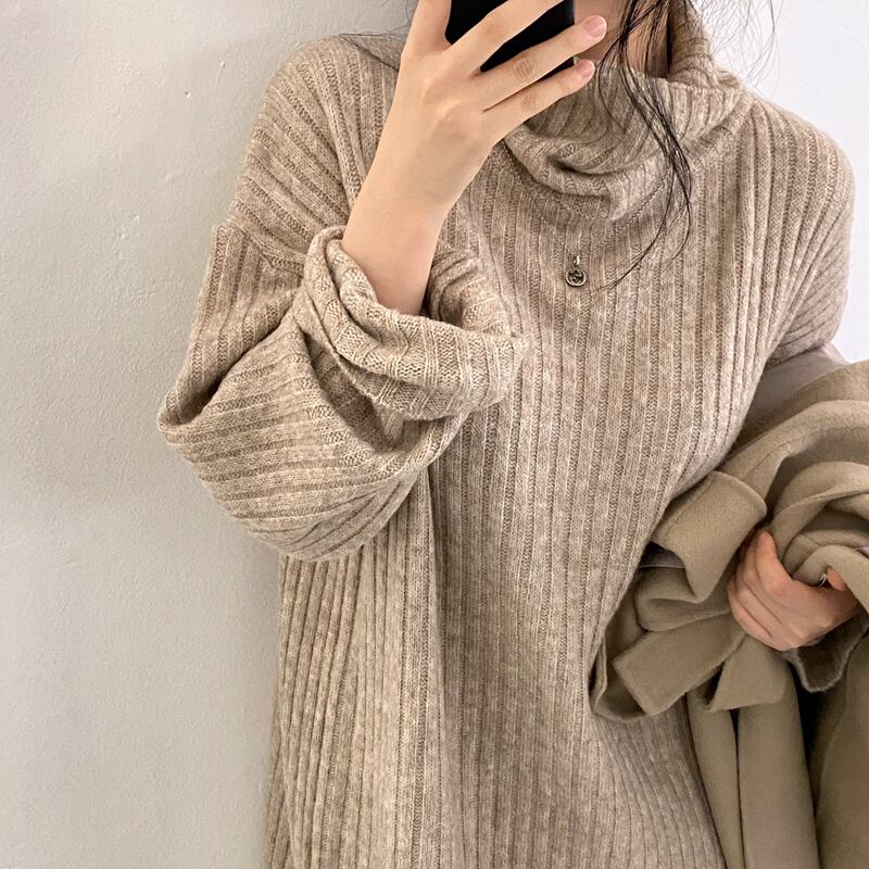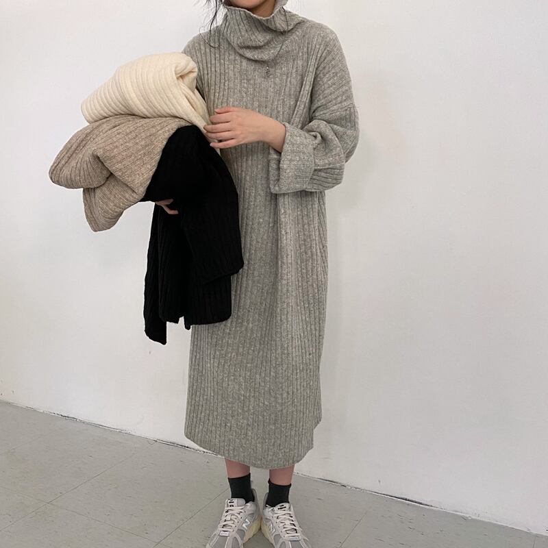 インナーピットストライプボトミングスカート女性2020年秋冬バージョンのハイカラーウォームルーズロングセータースカート クレセントシティ32222800744