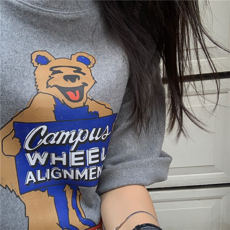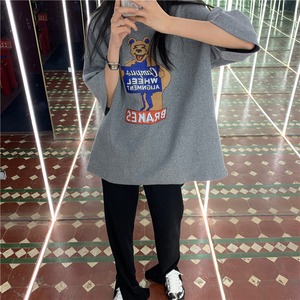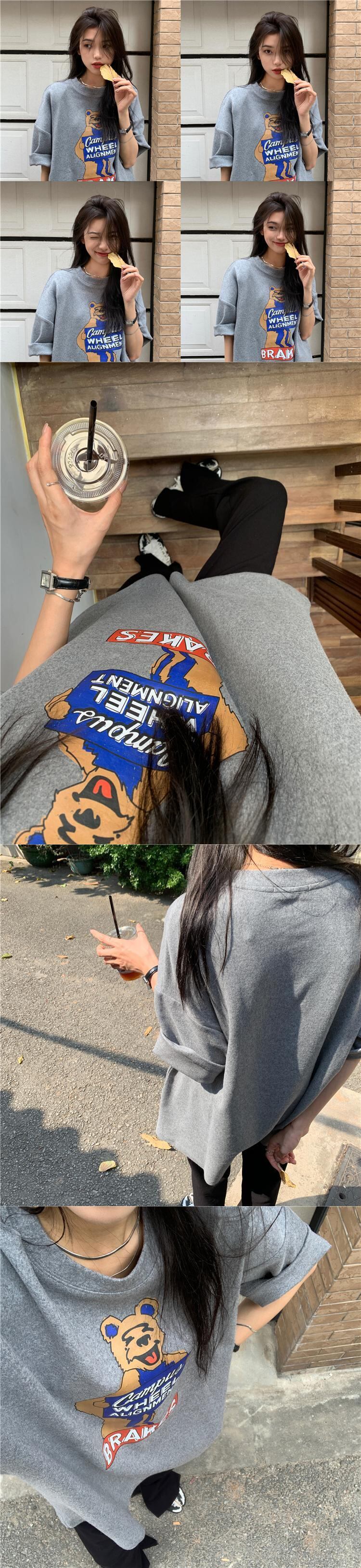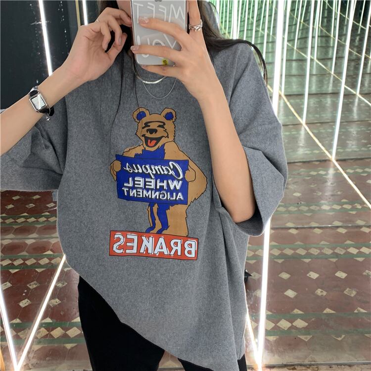 シックなクマ柄の半袖Tシャツ女性2021年春のルーズカジュアル厚みのあるサンドグレーのトップインのバージョン クレセントシティ70437438188