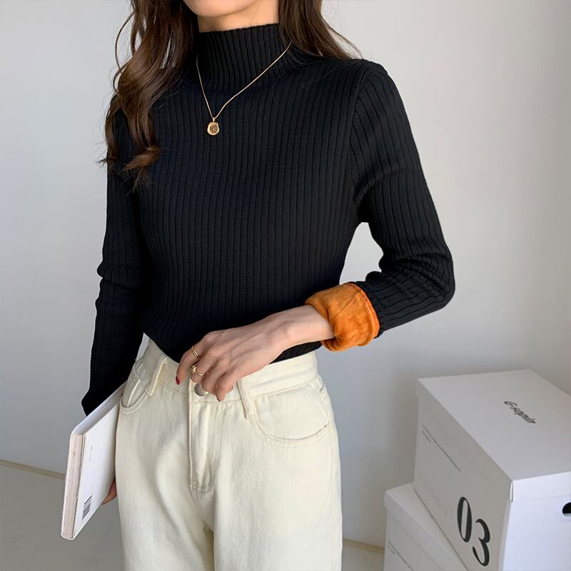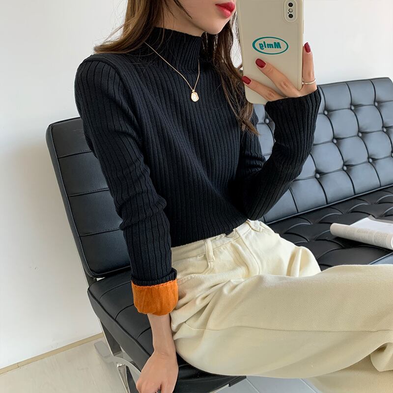 クレセントシティプラスベルベットの厚い暖かいジャケットの女性は秋と冬の着用バージョンは薄い野生のハーフハイネックセーターセーターでした クレセントシティ24182880907