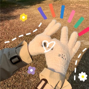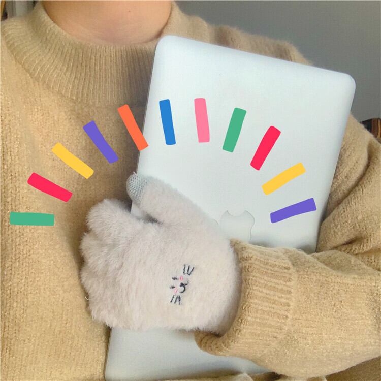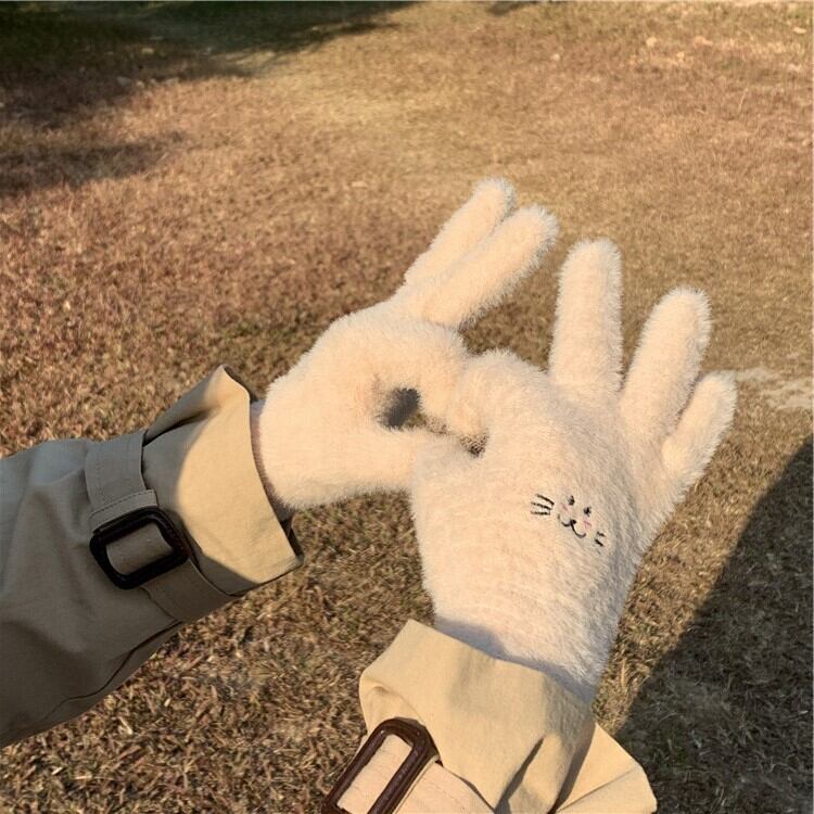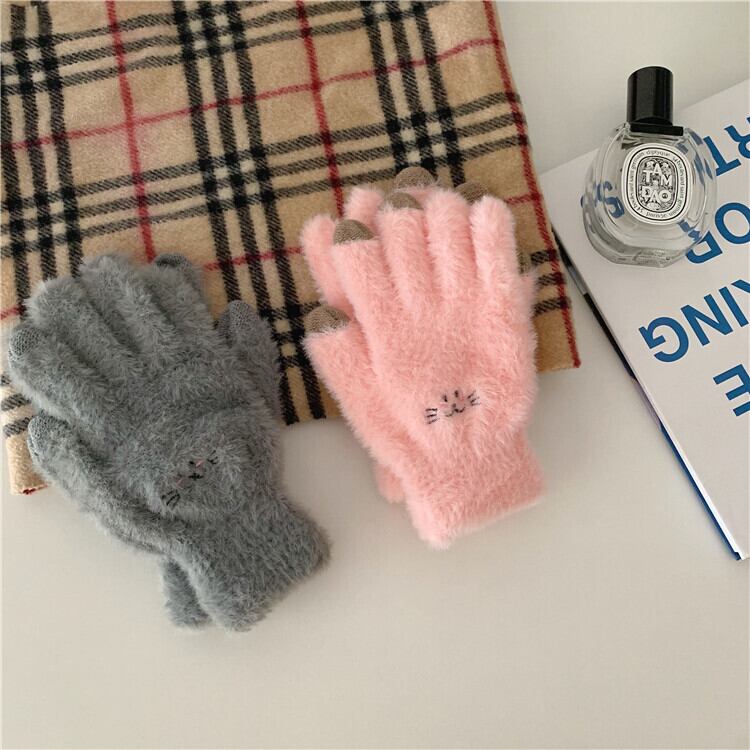 5本指手袋女性冬の暖かさ2020新しいバージョンの防寒ぬいぐるみかわいい防風デザインフルフィンガー手袋 クレセントシティ85922659781