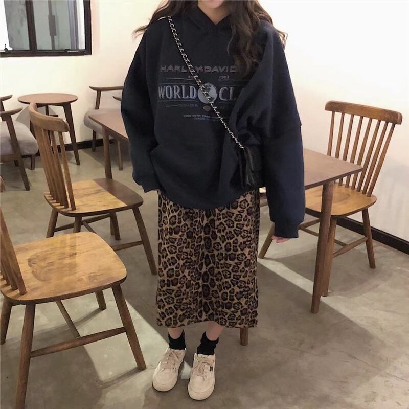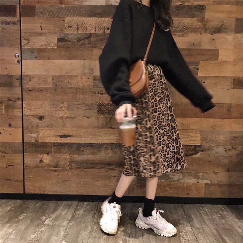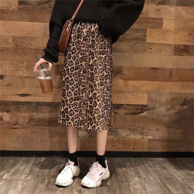 ウエストヒョウ柄スカートレディース2020年秋冬新作スタイル伸縮性ウエストサイドスリットデザインセンスミドル丈スカート クレセントシティ38419934780