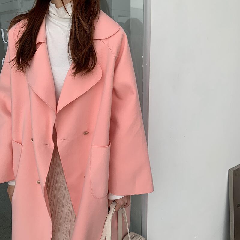 クレセントシティのスーツの襟の両面ウールコート女性2020年秋冬新しいルーズミドル丈オーバーザニーウールコート クレセントシティ56135643707