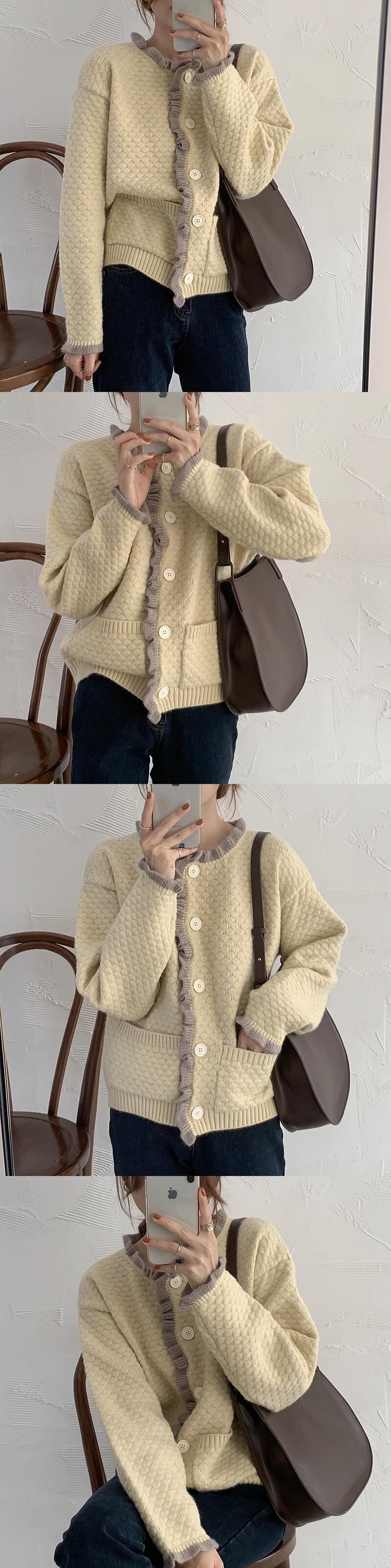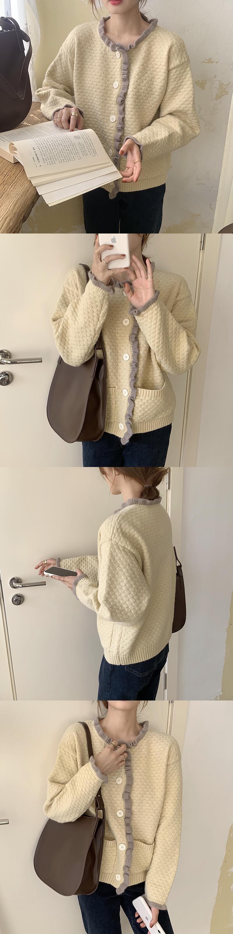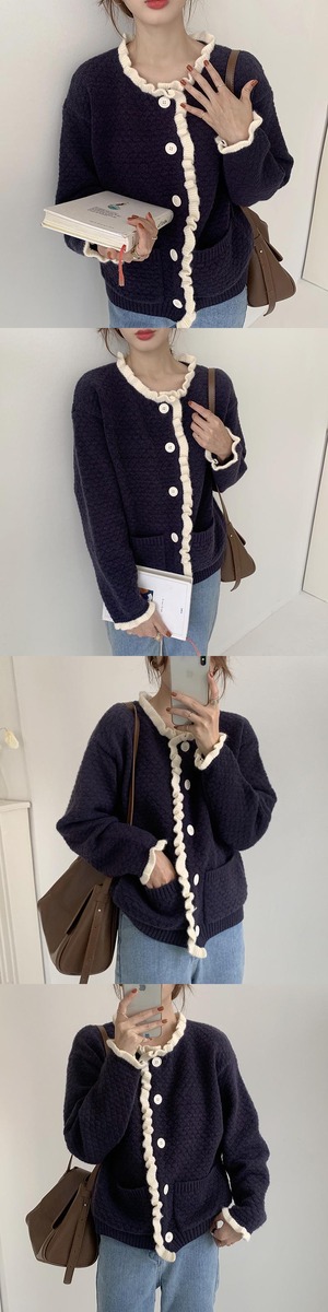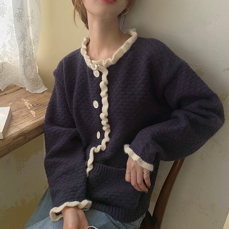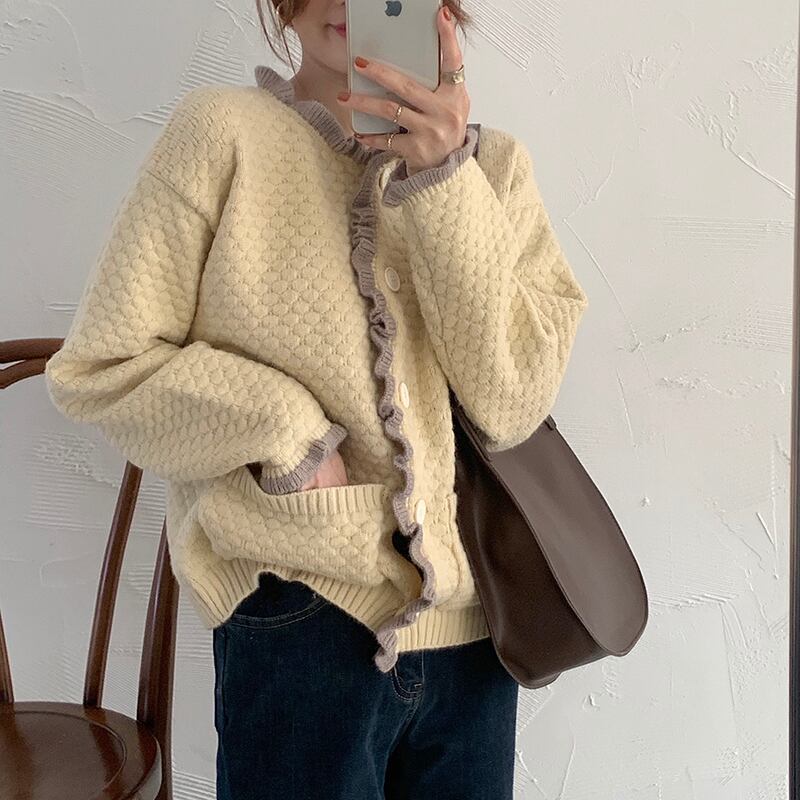 センスラウンドネック木製イヤーニットカーディガン2020年秋冬新スタイルレイジールーズ気質セーターコート クレセントシティ13941262836