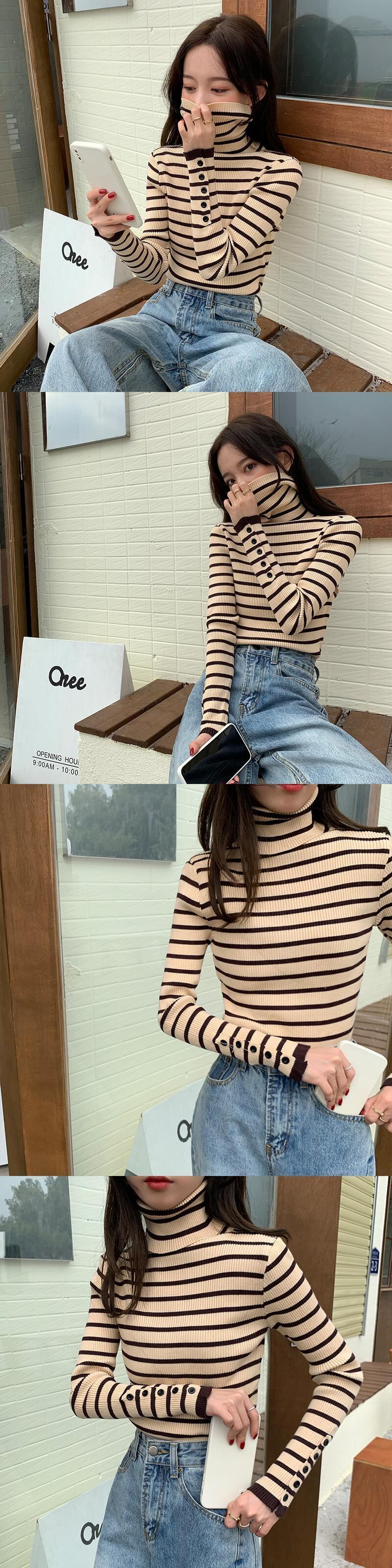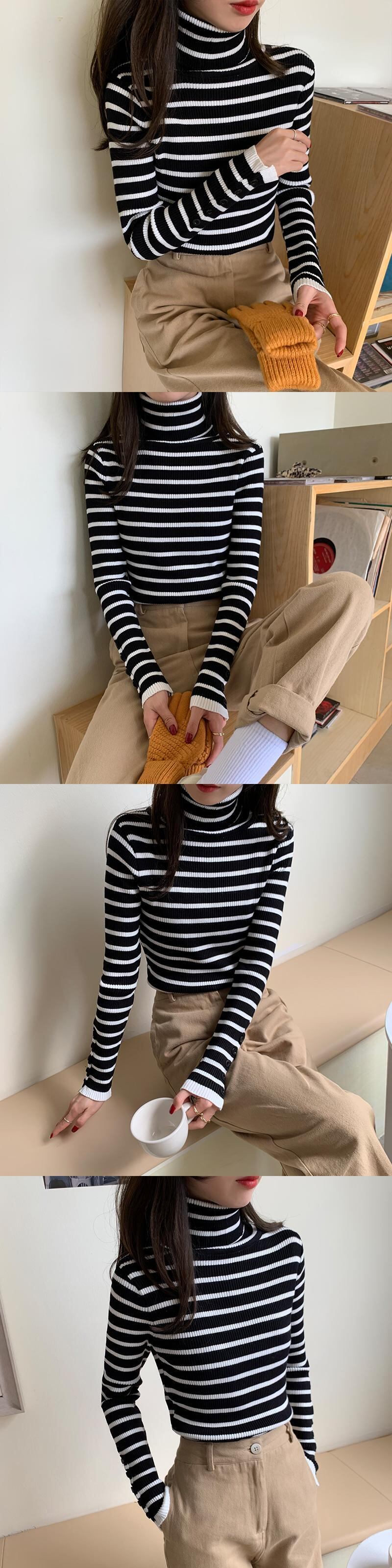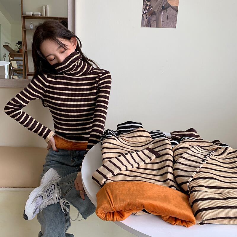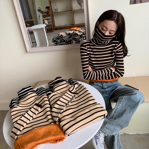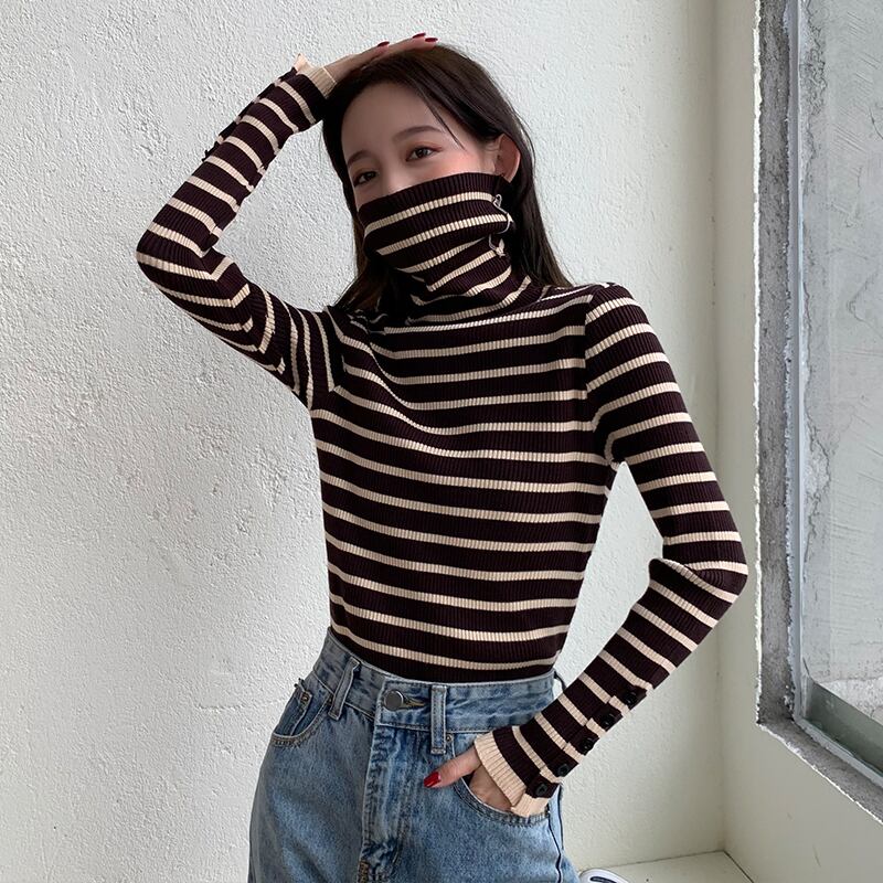 クレセントシティタートルネックセーター女性は秋と冬にスタイルのエインスタイルのワイルドストライプニットボトミングシャツとフリーストップを着用します クレセントシティ10362972283