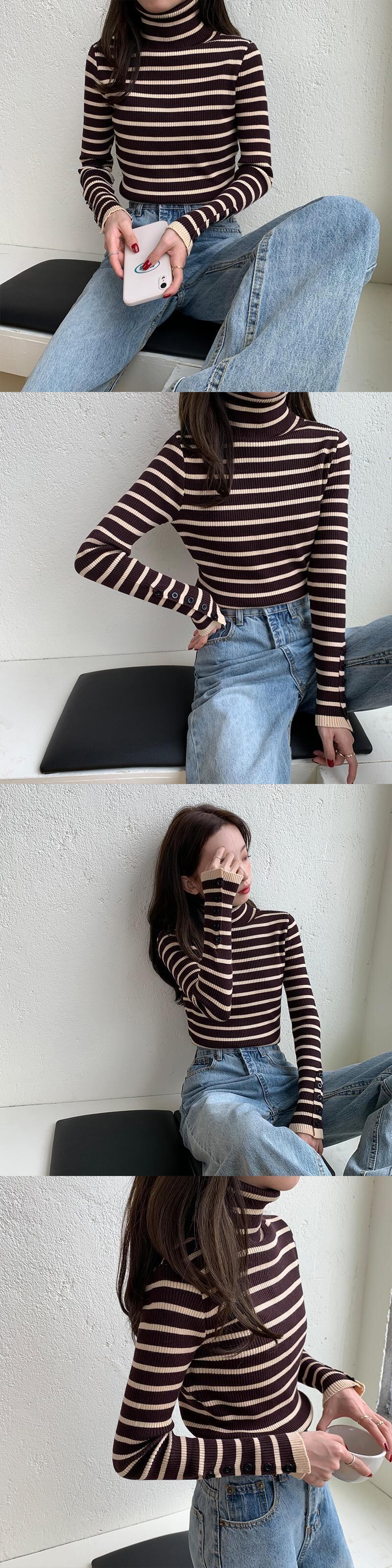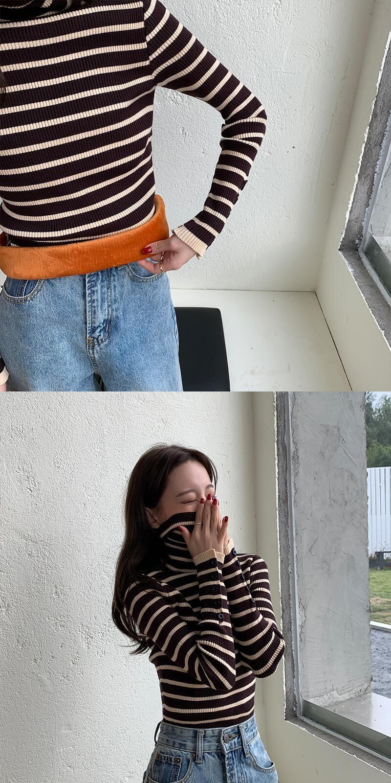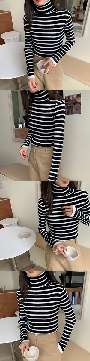クレセントシティタートルネックセーター女性は秋と冬にスタイルのエインスタイルのワイルドストライプニットボトミングシャツとフリーストップを着用します クレセントシティ10362972283
