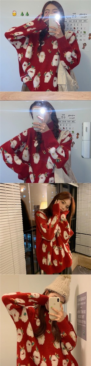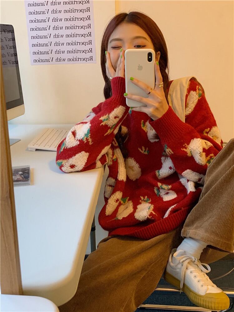 レッドセーター レディースルーズウィンタープルオーバー ニットトップス 冬物 クレセントシティ82927724307