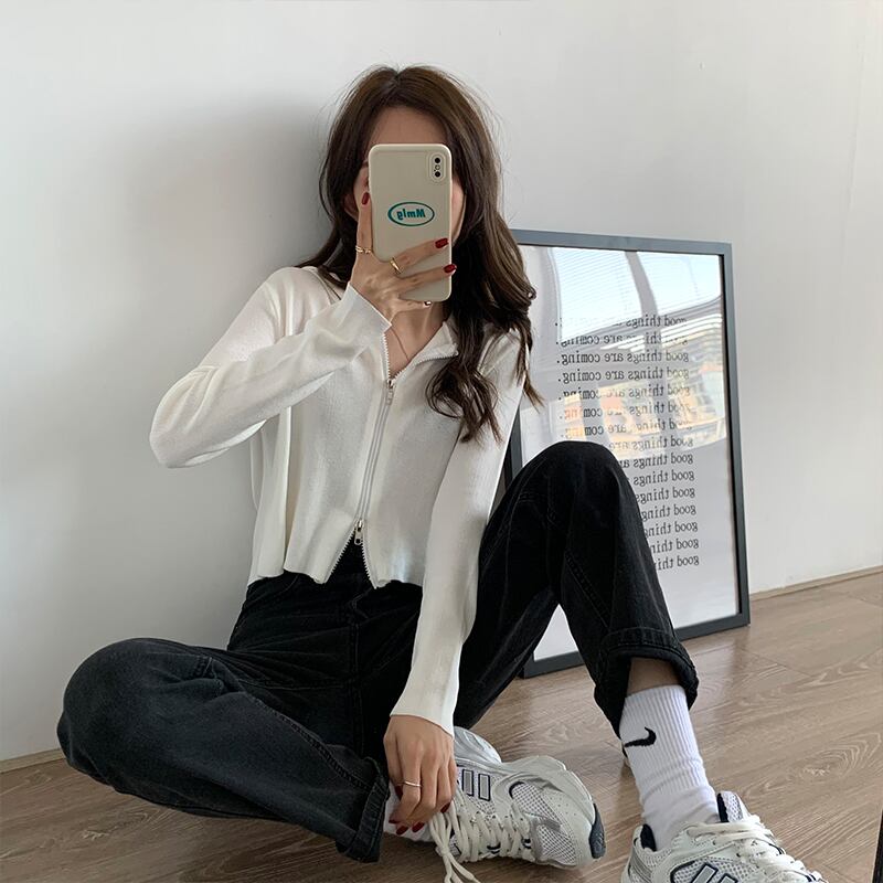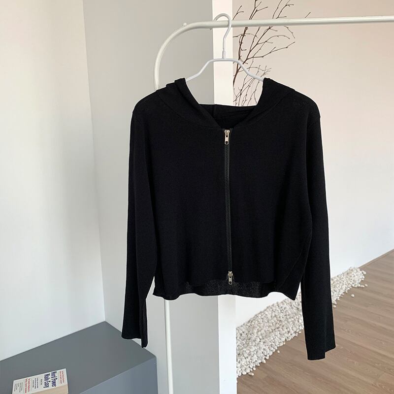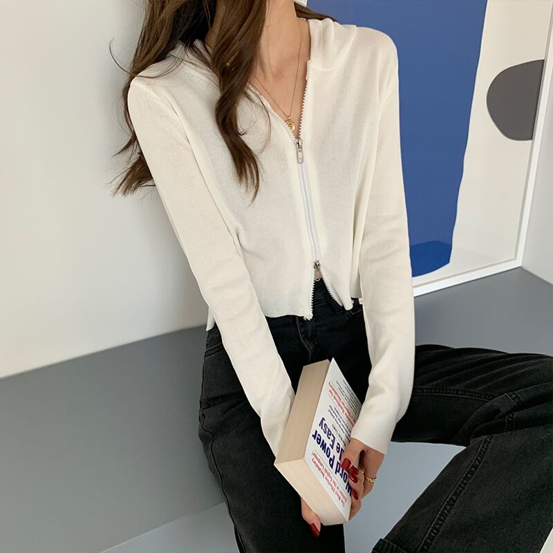 オータムフードショート長袖スリーブニットトップス レディースセーター カーディガンジャケット ロング 秋物 クレセントシティ889399502