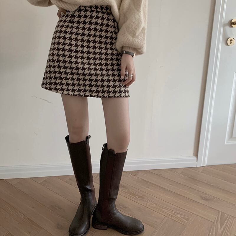 スカート オータムウィンターレディースハイウェストウェスト薄手Aライン格子柄 秋物 冬物 クレセントシティ28766431021