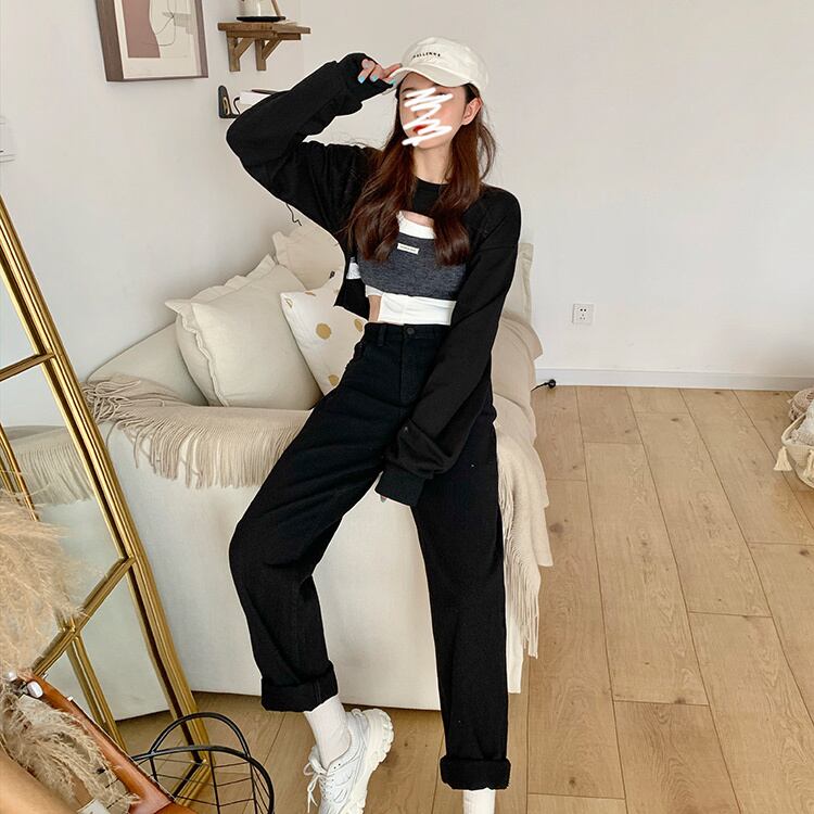 ジーンズ レディーススタイルルーズハイウェストウェストスリムパンツ ウィンター 冬物 クレセントシティ56165395541