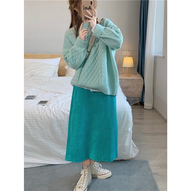 ラウンドネックプルオーバー ルーズセーター ストレッチウェストスカート カジュアルレディース エラスティック 伸縮 Oネック クレセントシティ19359221784